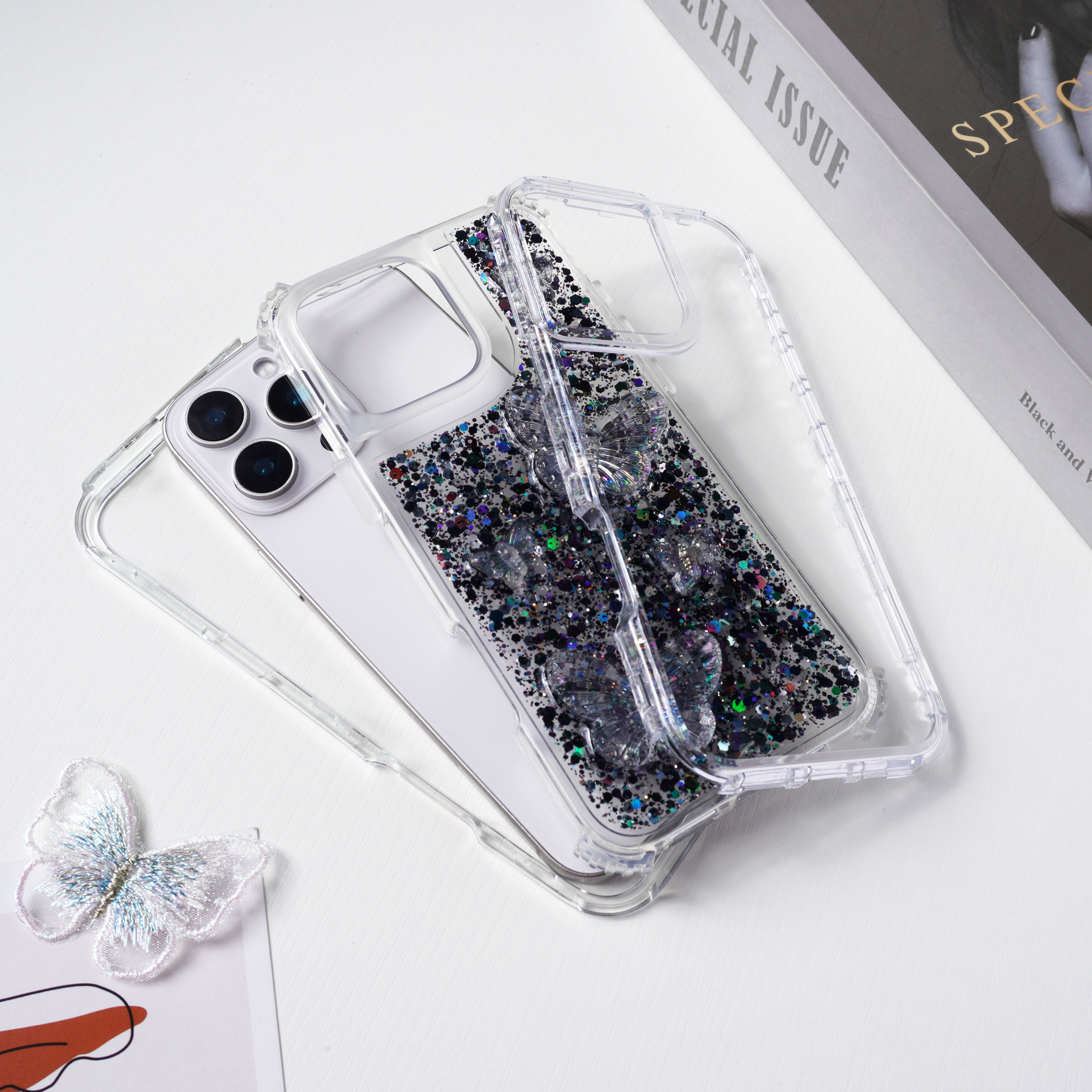 滴胶闪粉+蝴蝶饰品