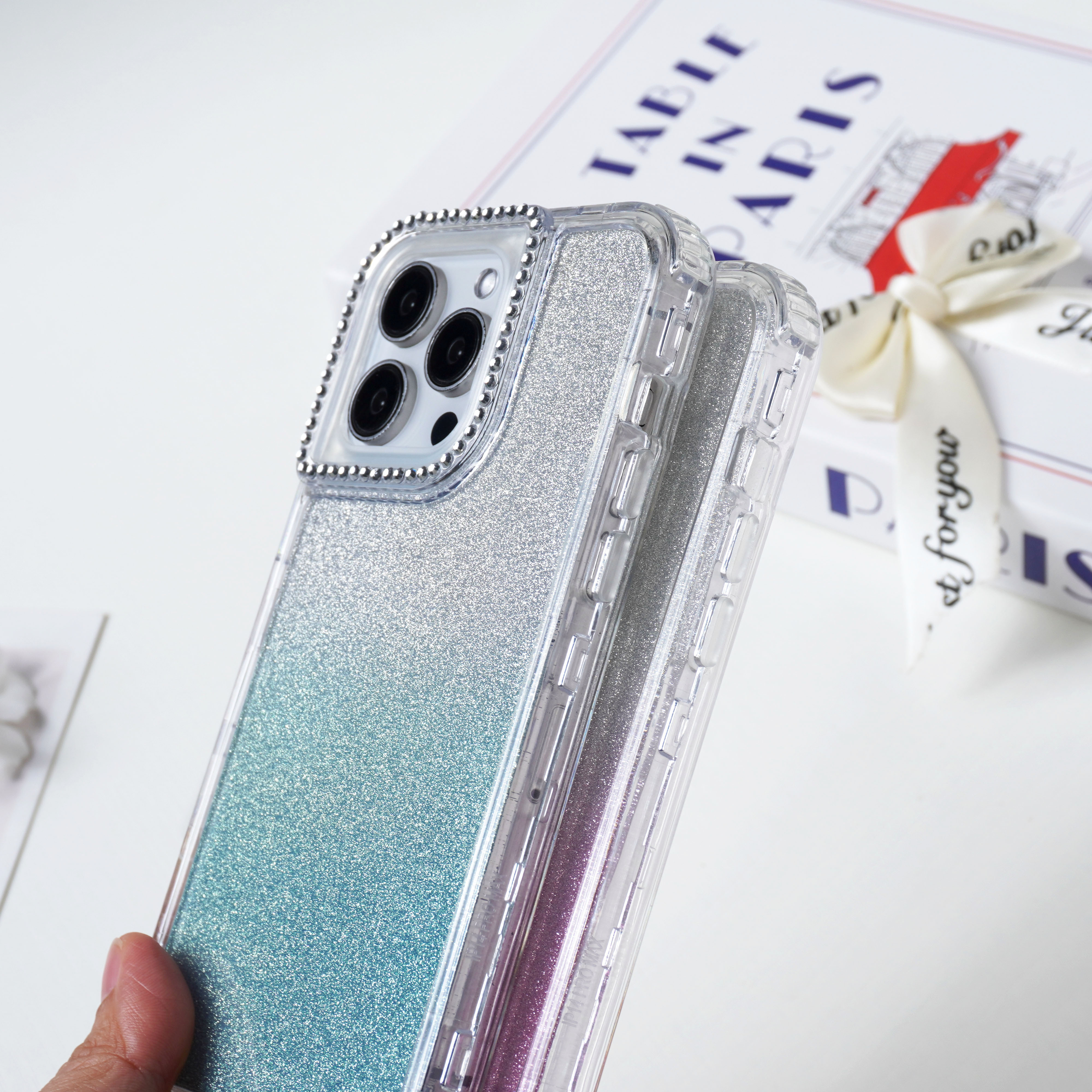 城市之心 透明TPU+渐变闪粉纸+PC点钻