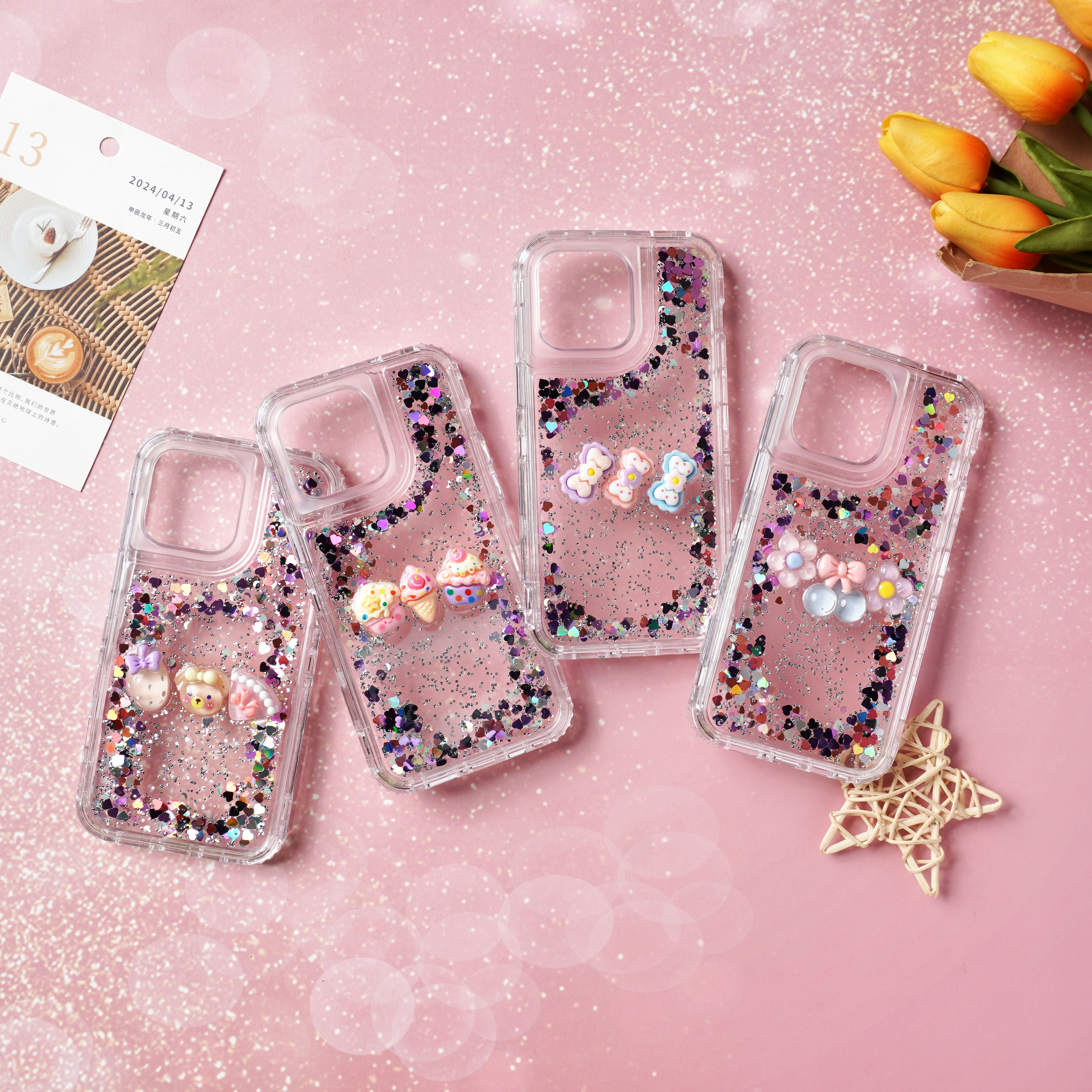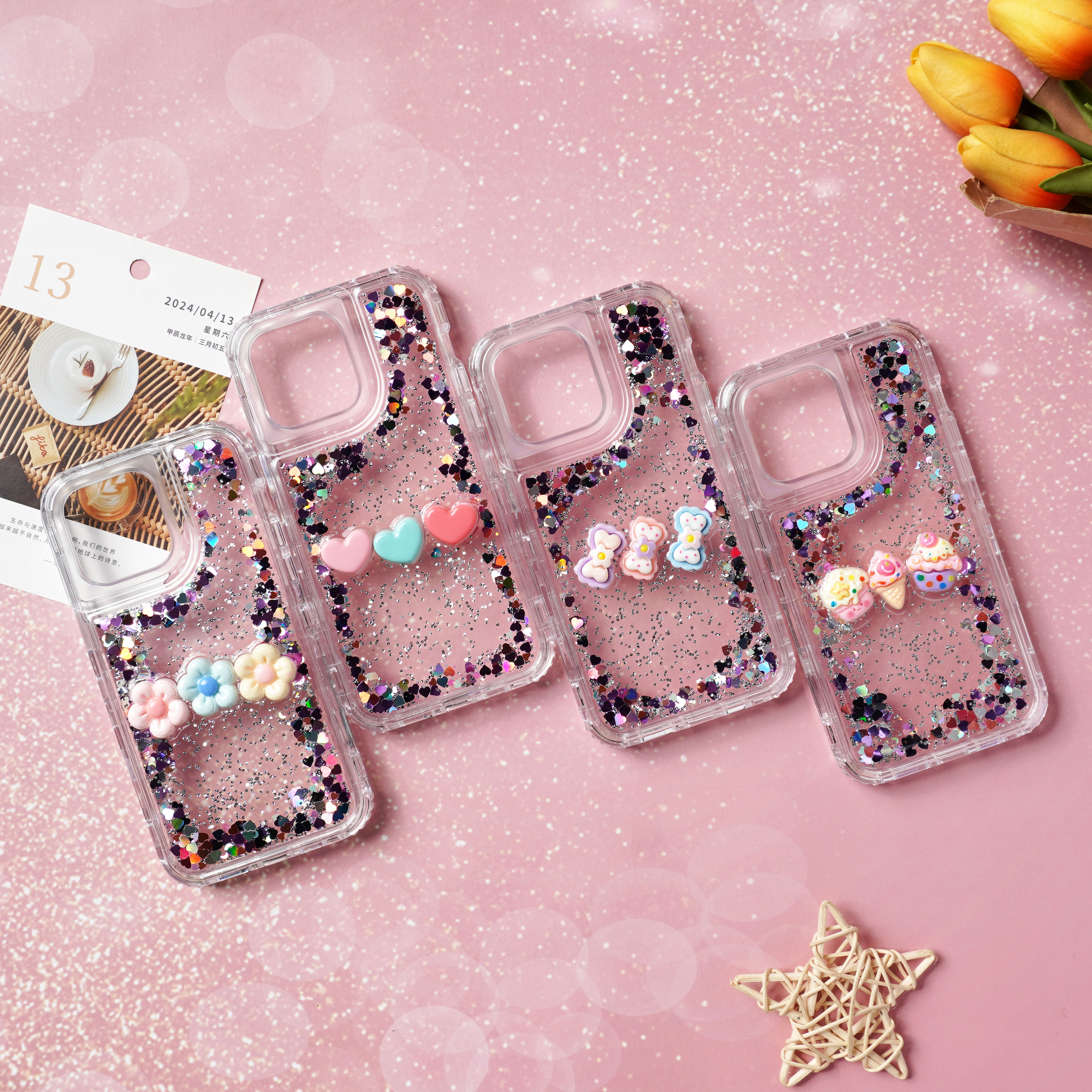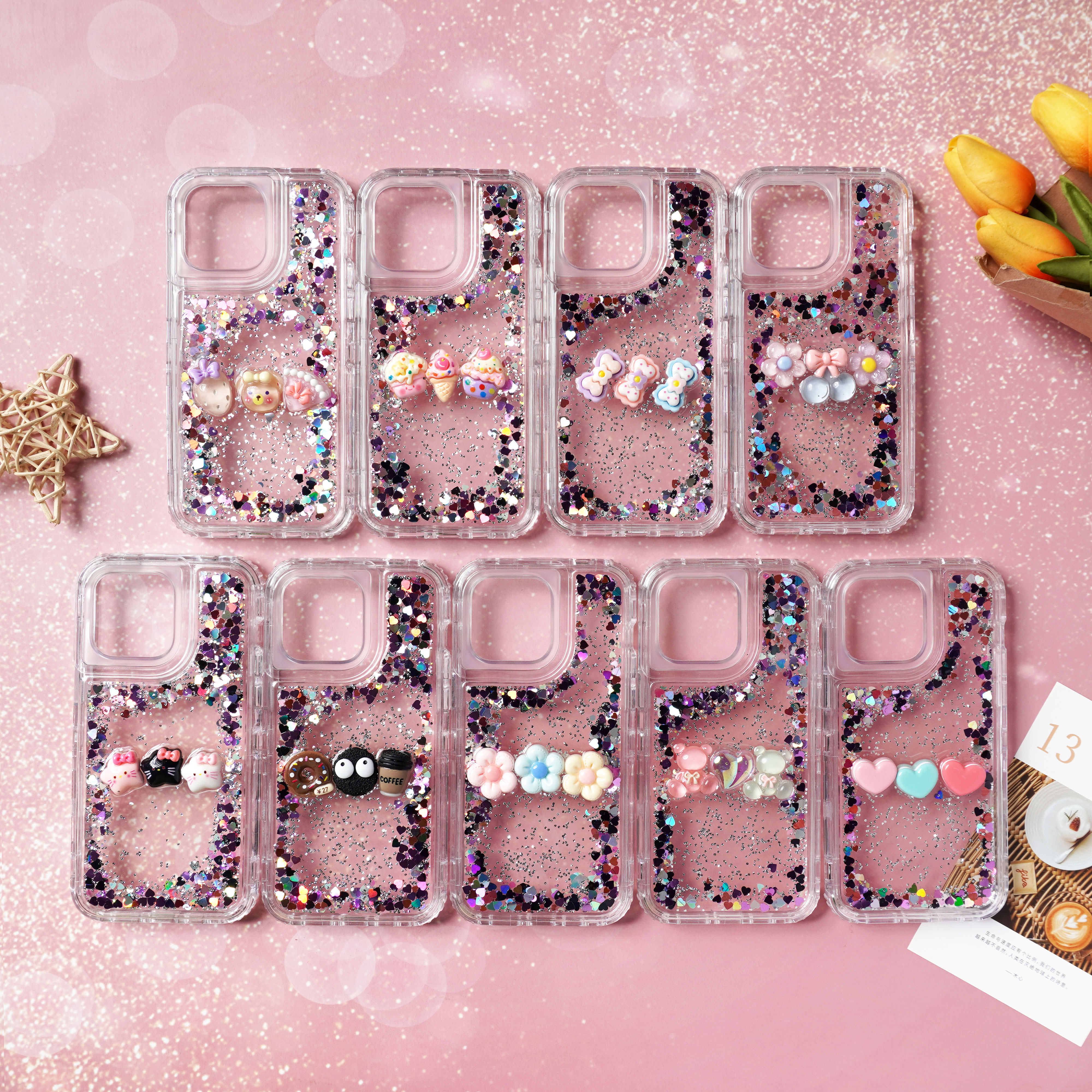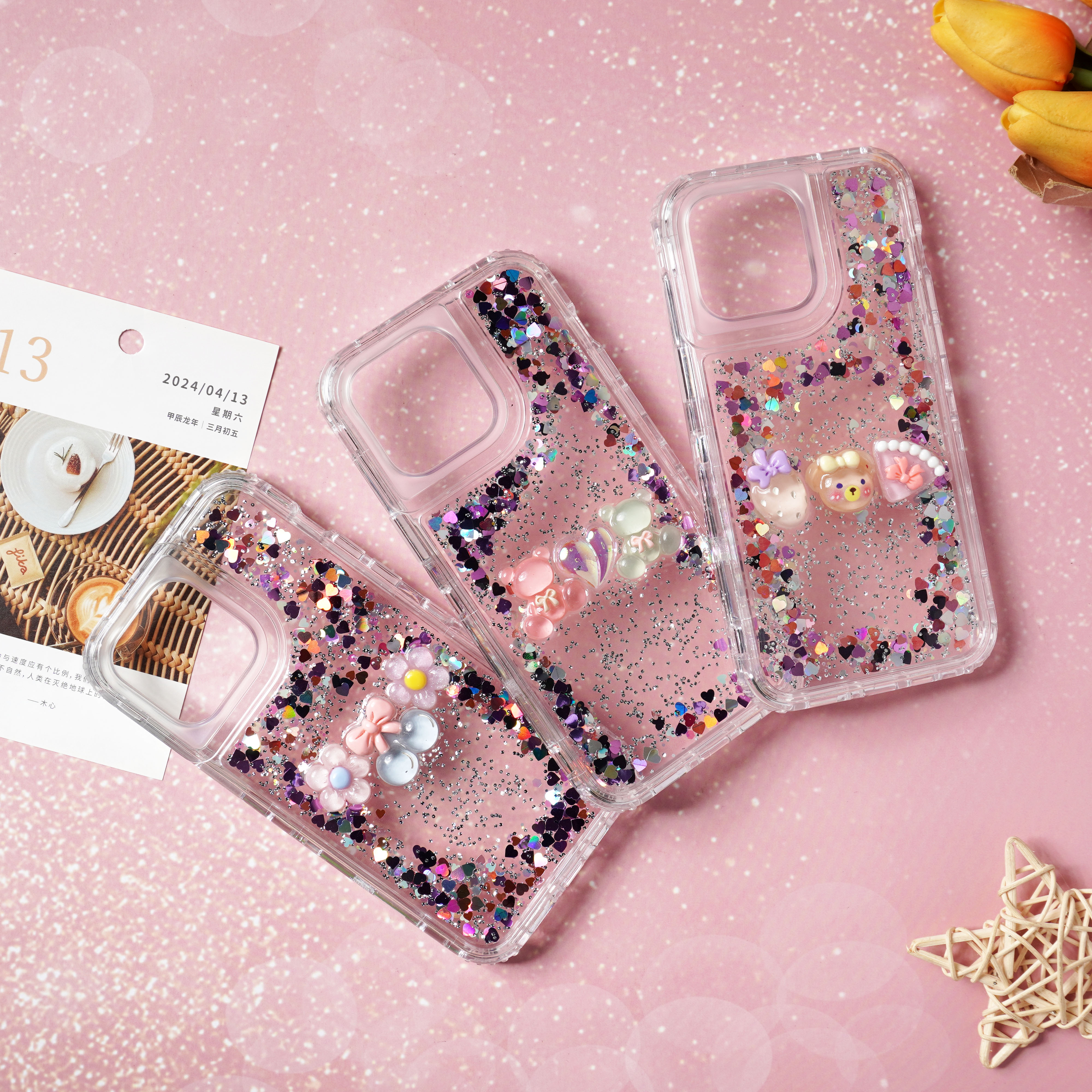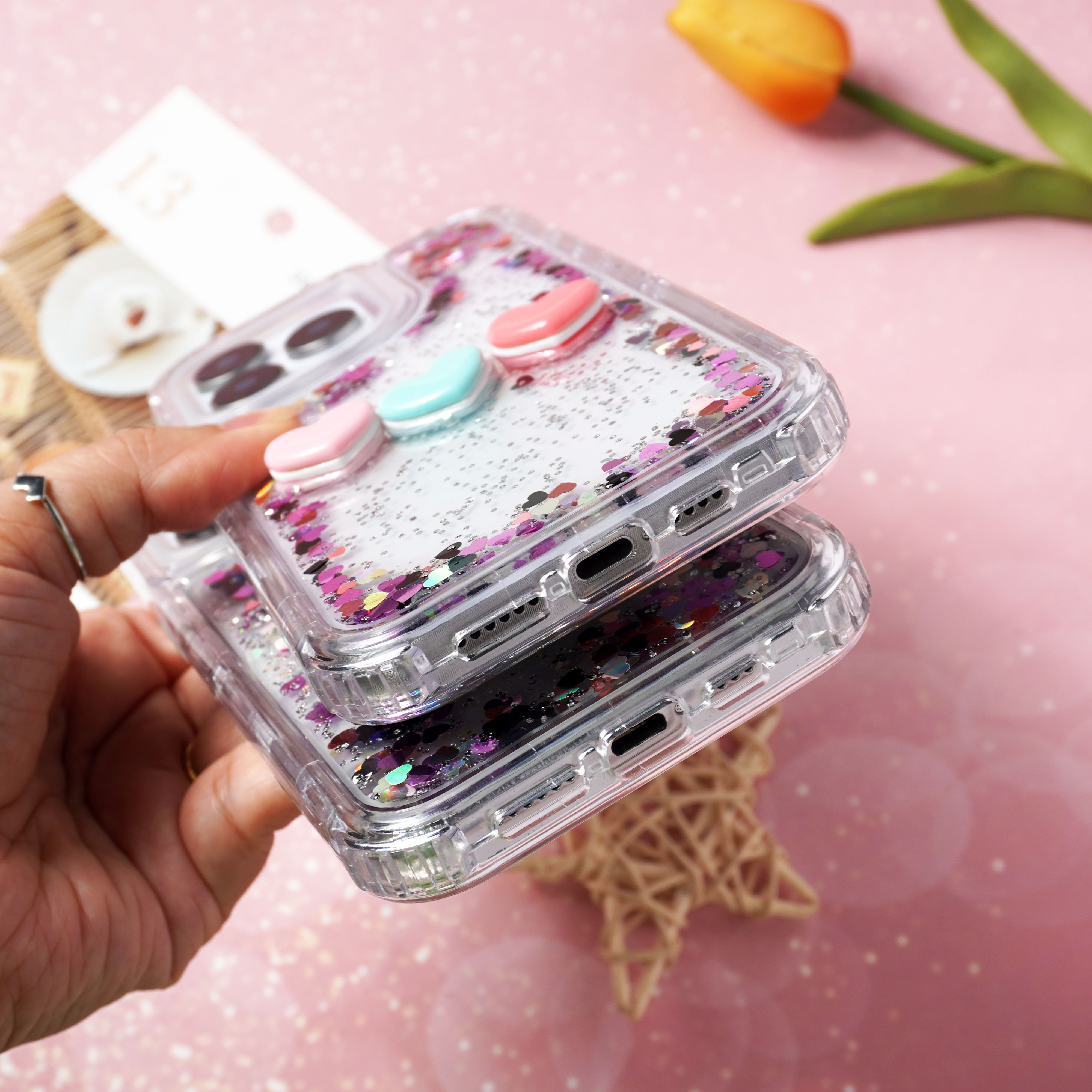 滴胶爱心闪粉+饰品
