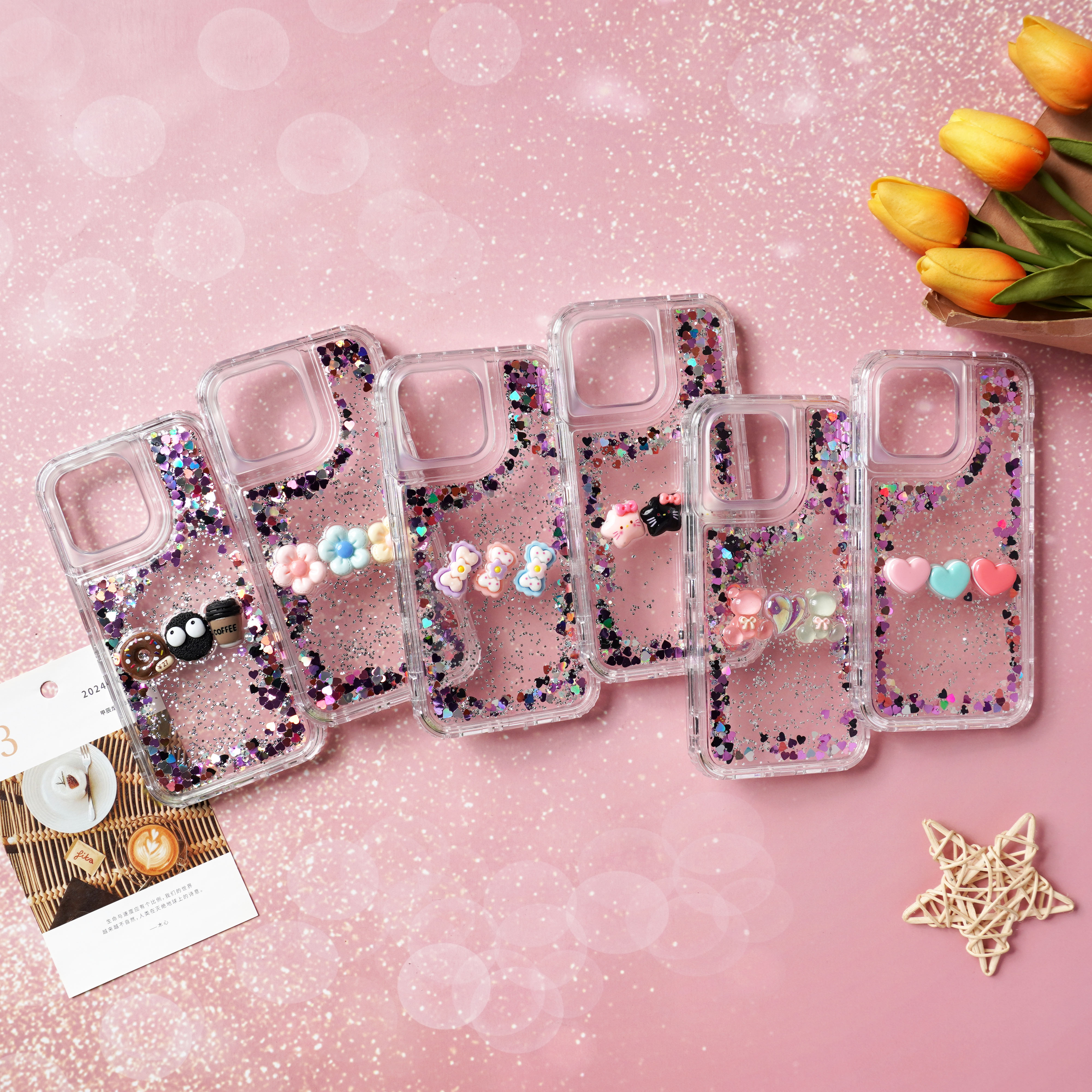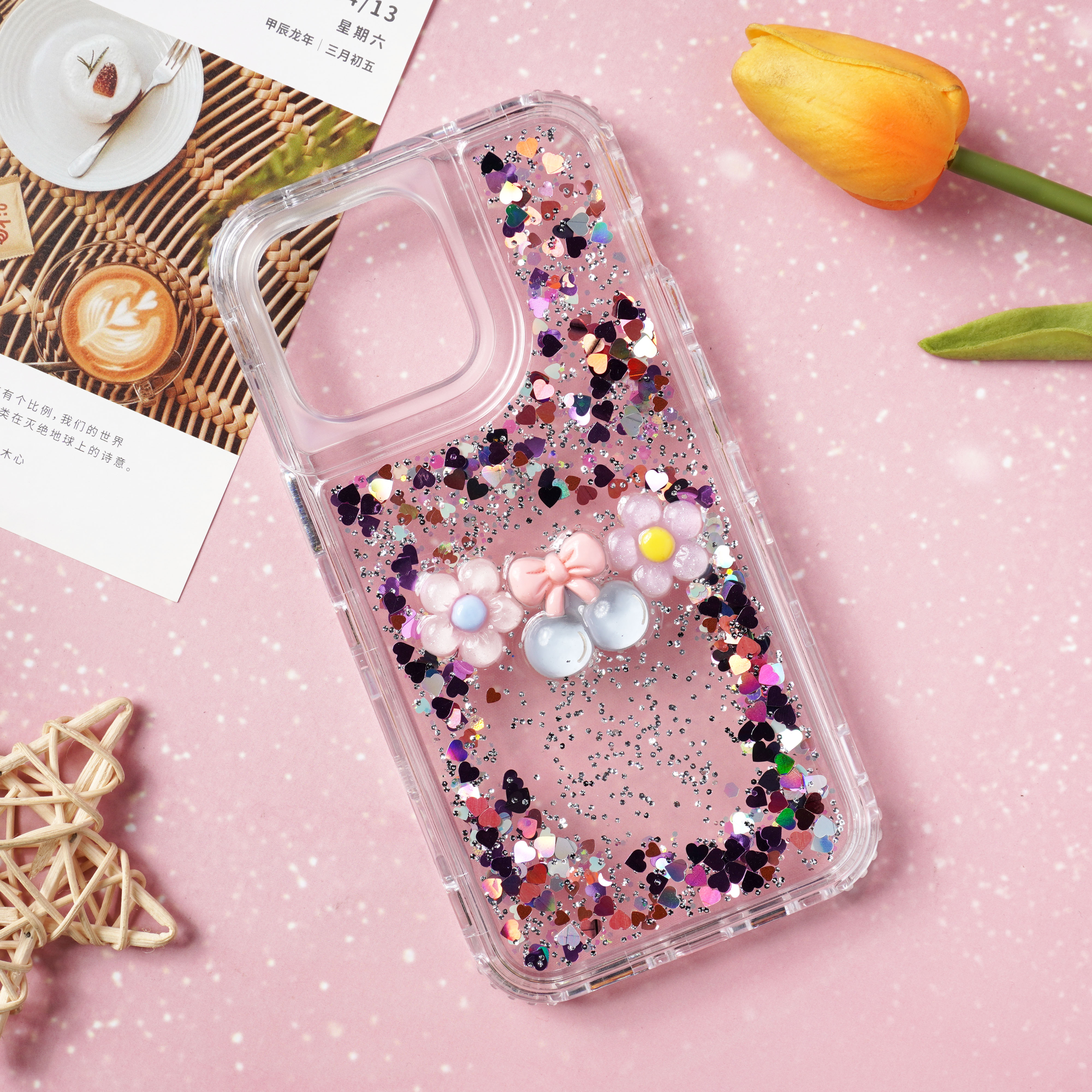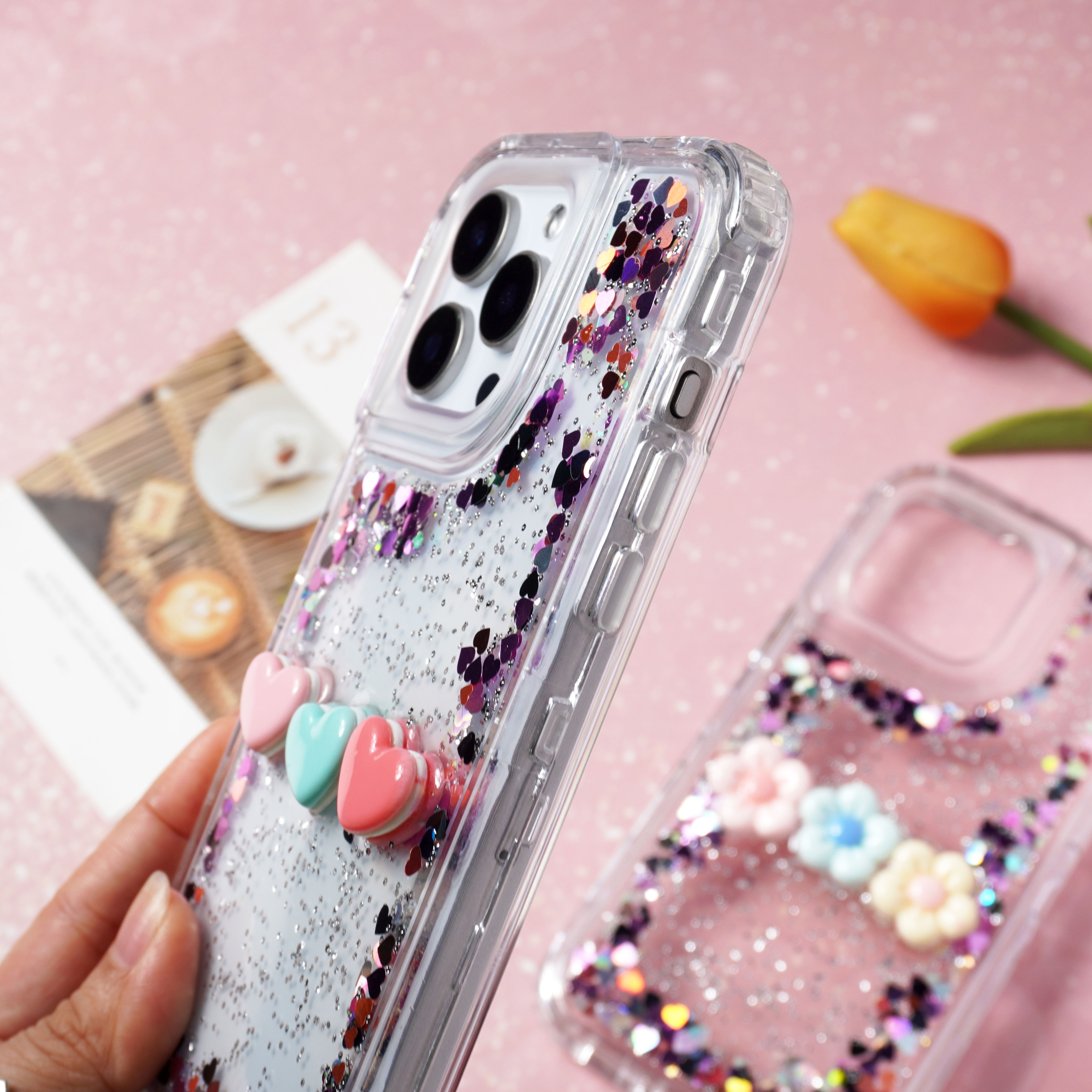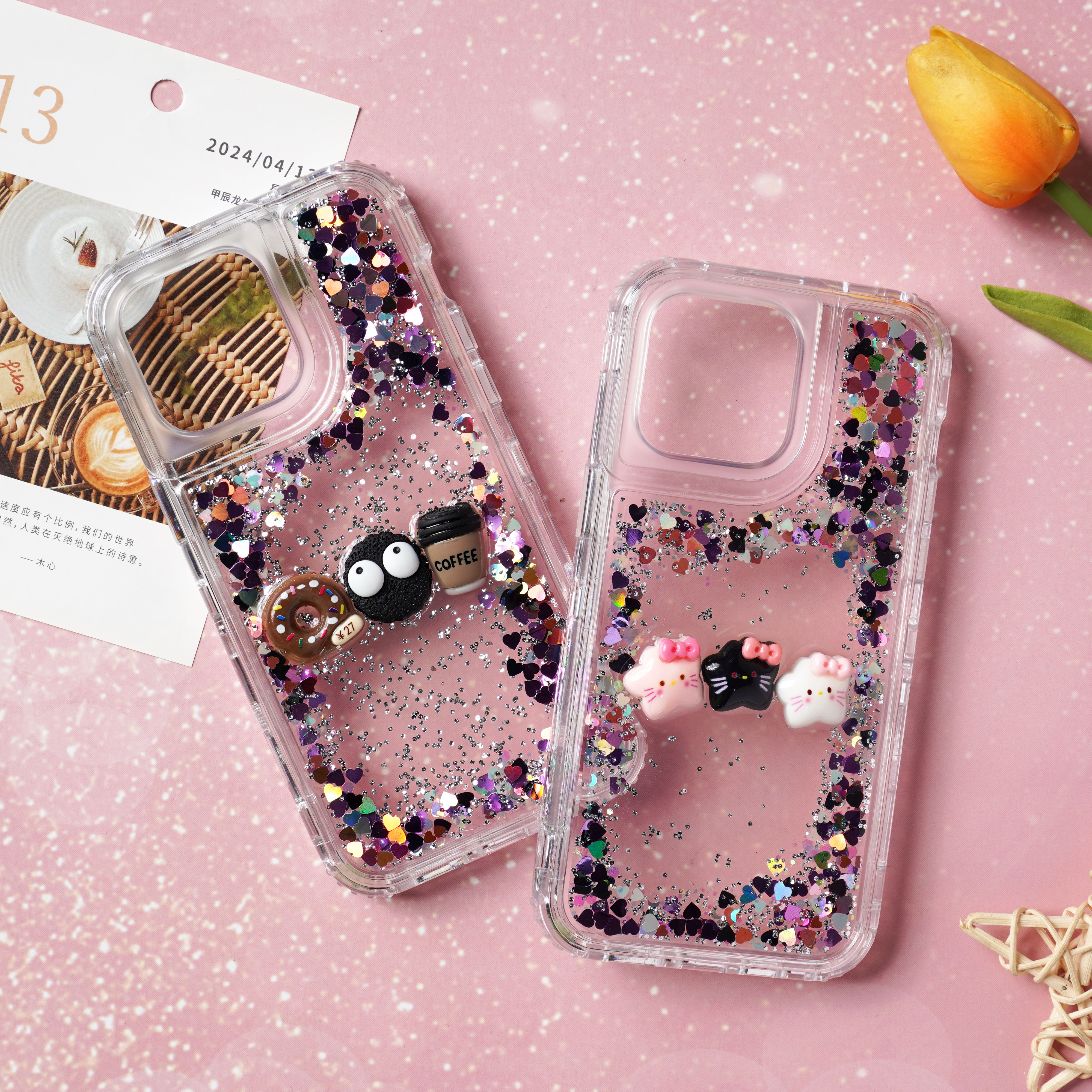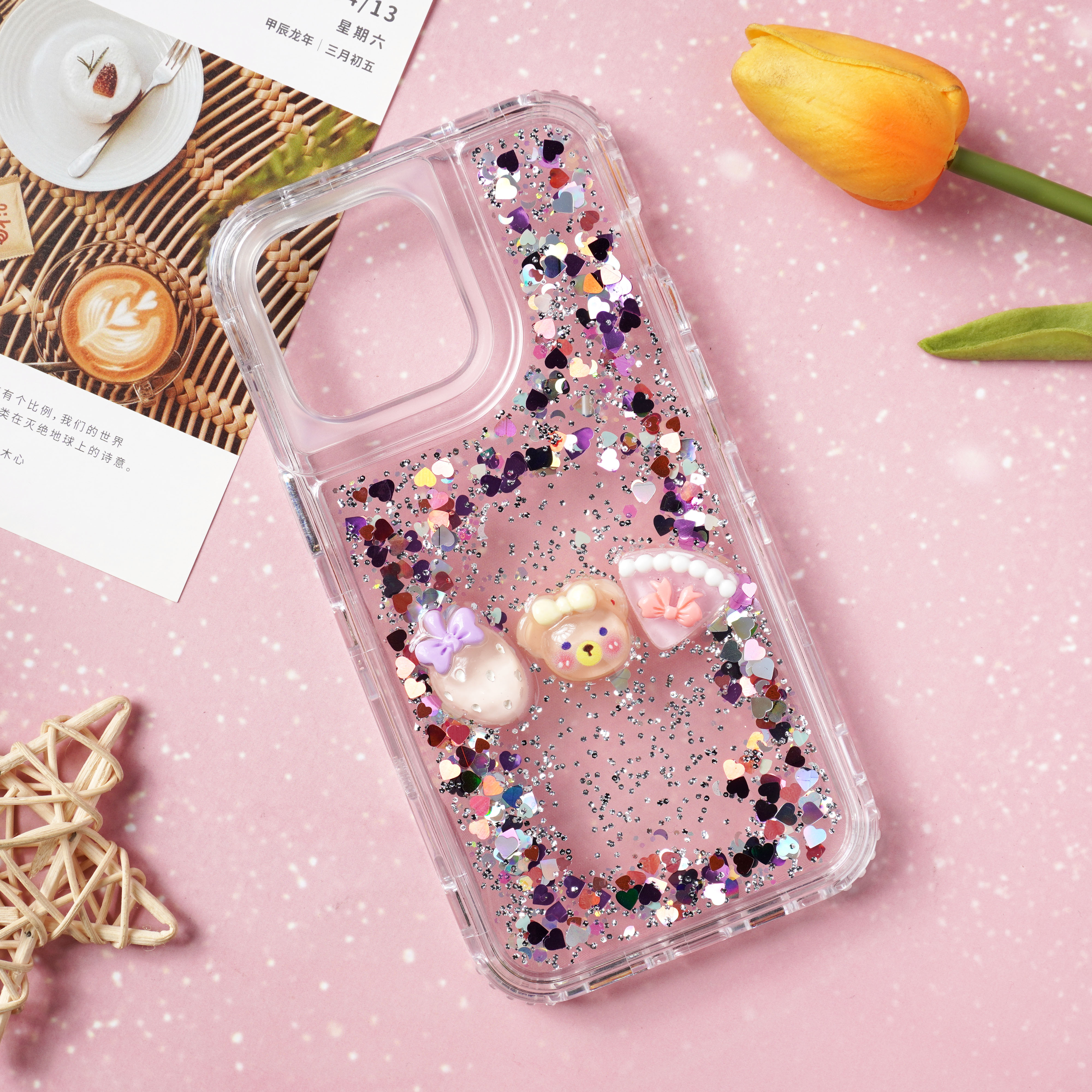 滴胶爱心闪粉+饰品