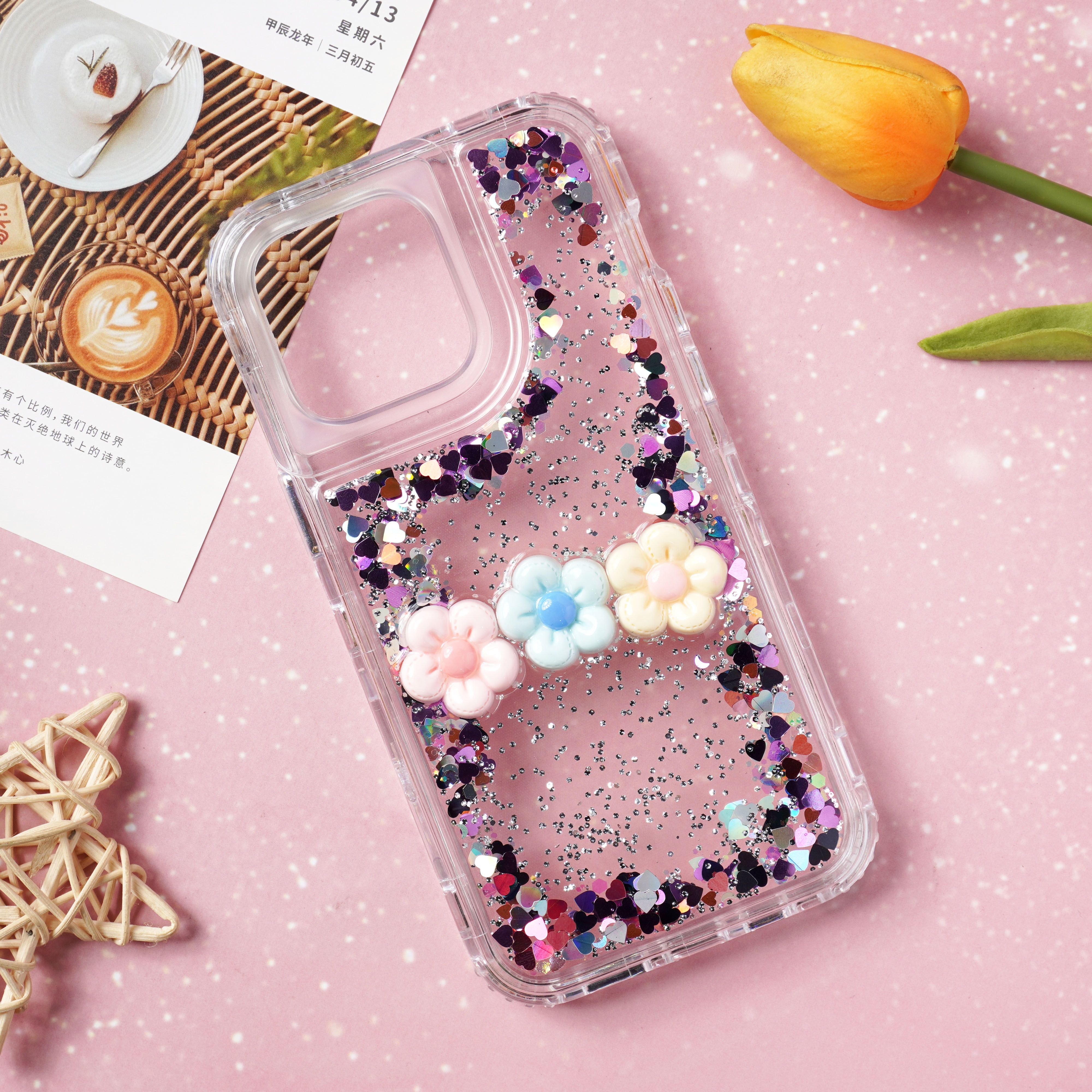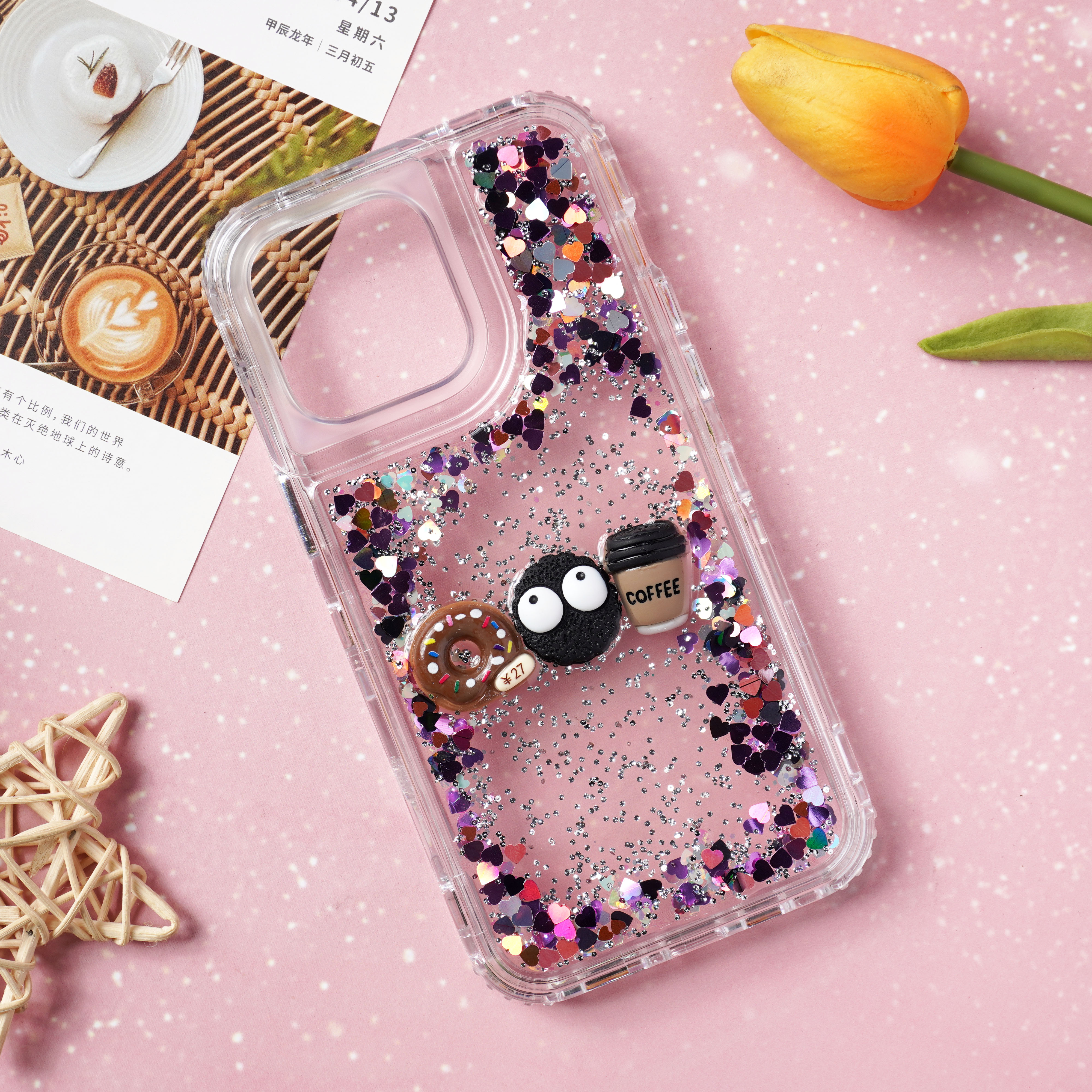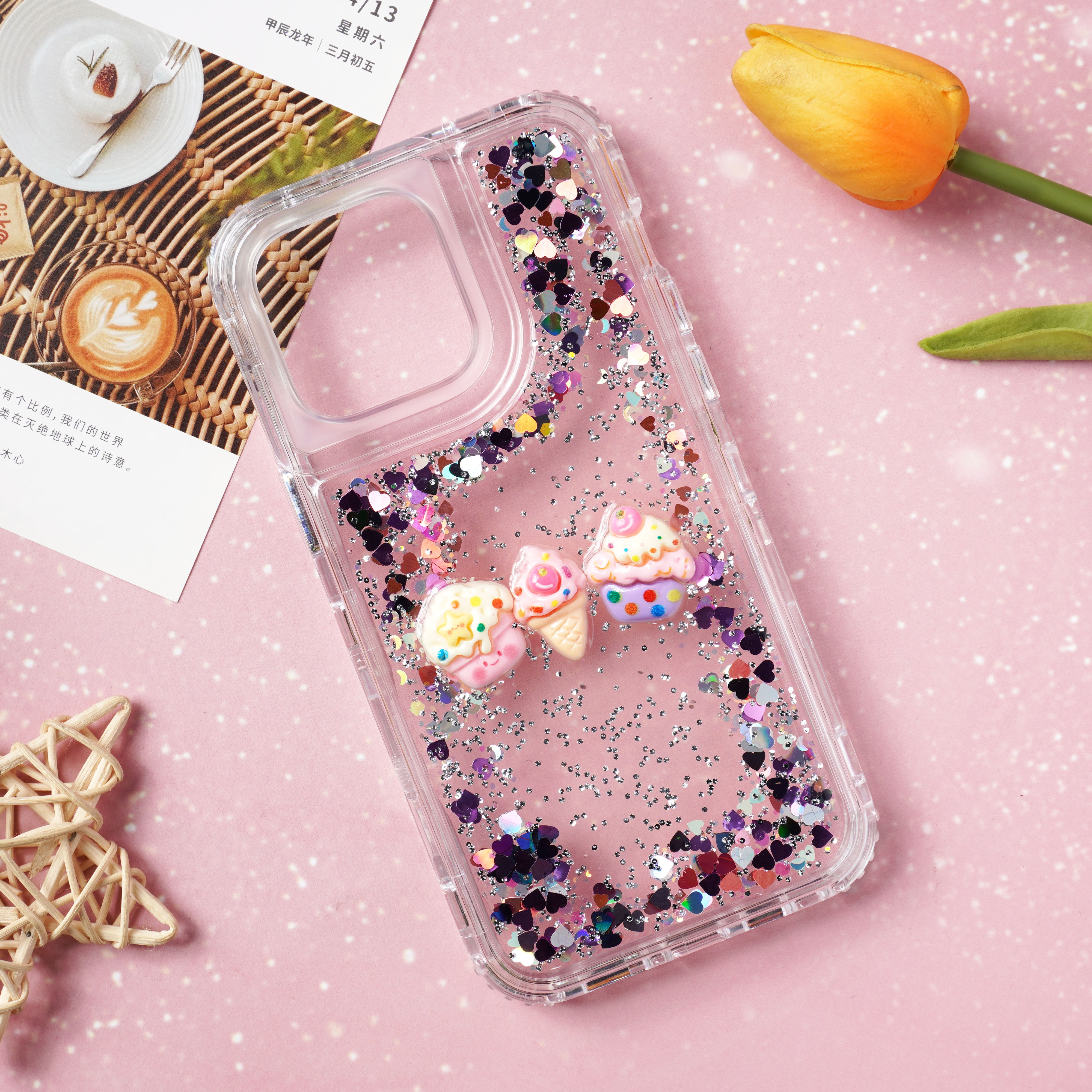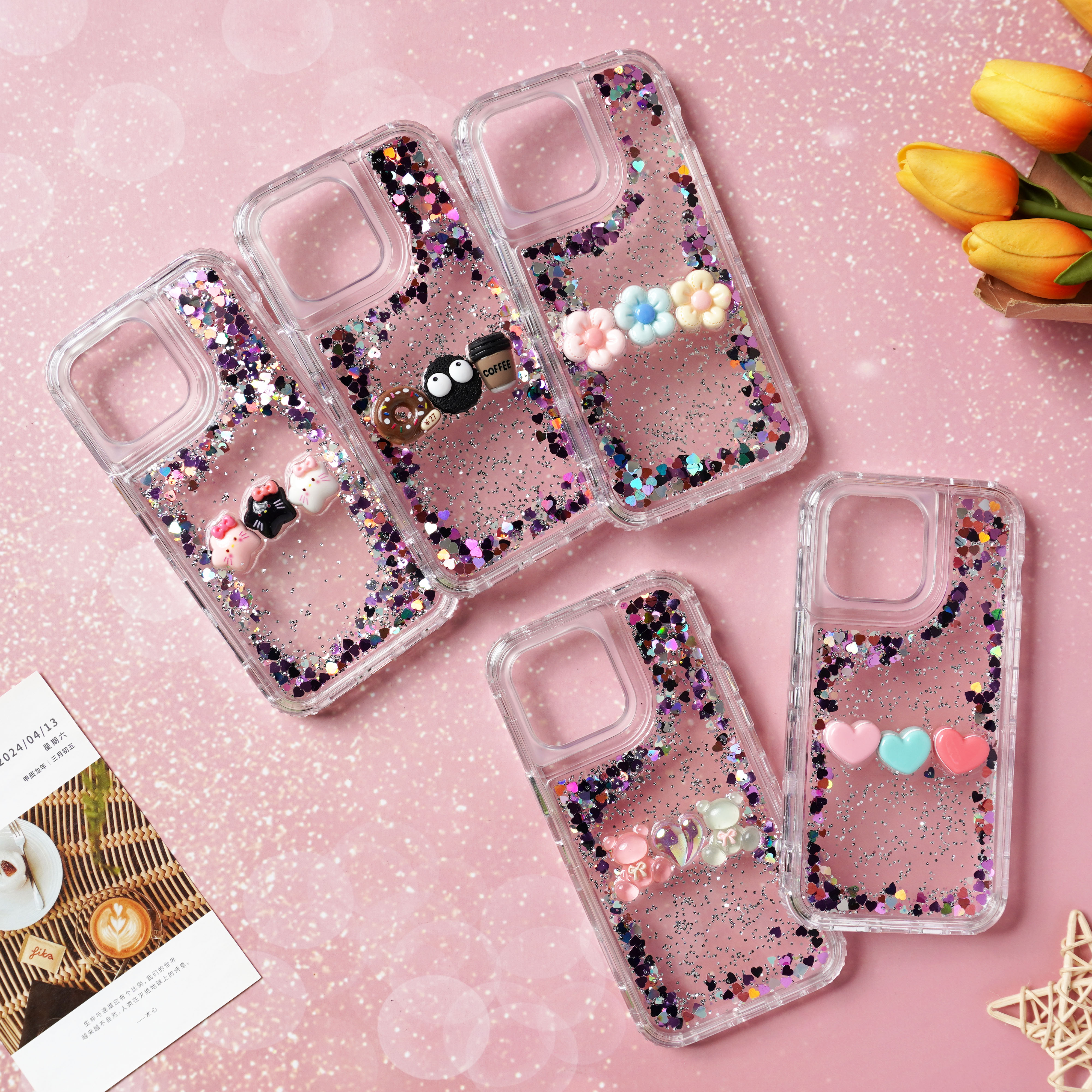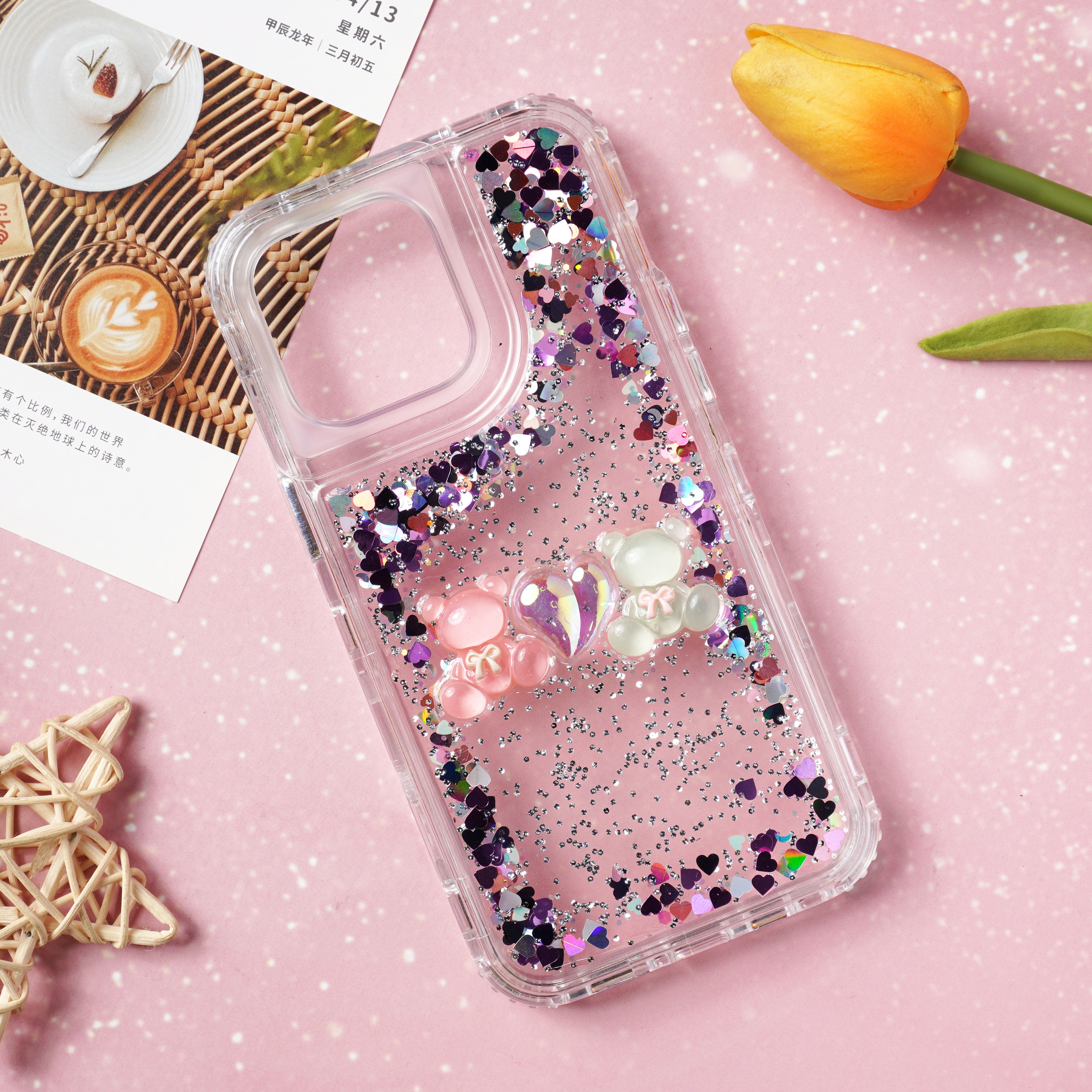 滴胶爱心闪粉+饰品
