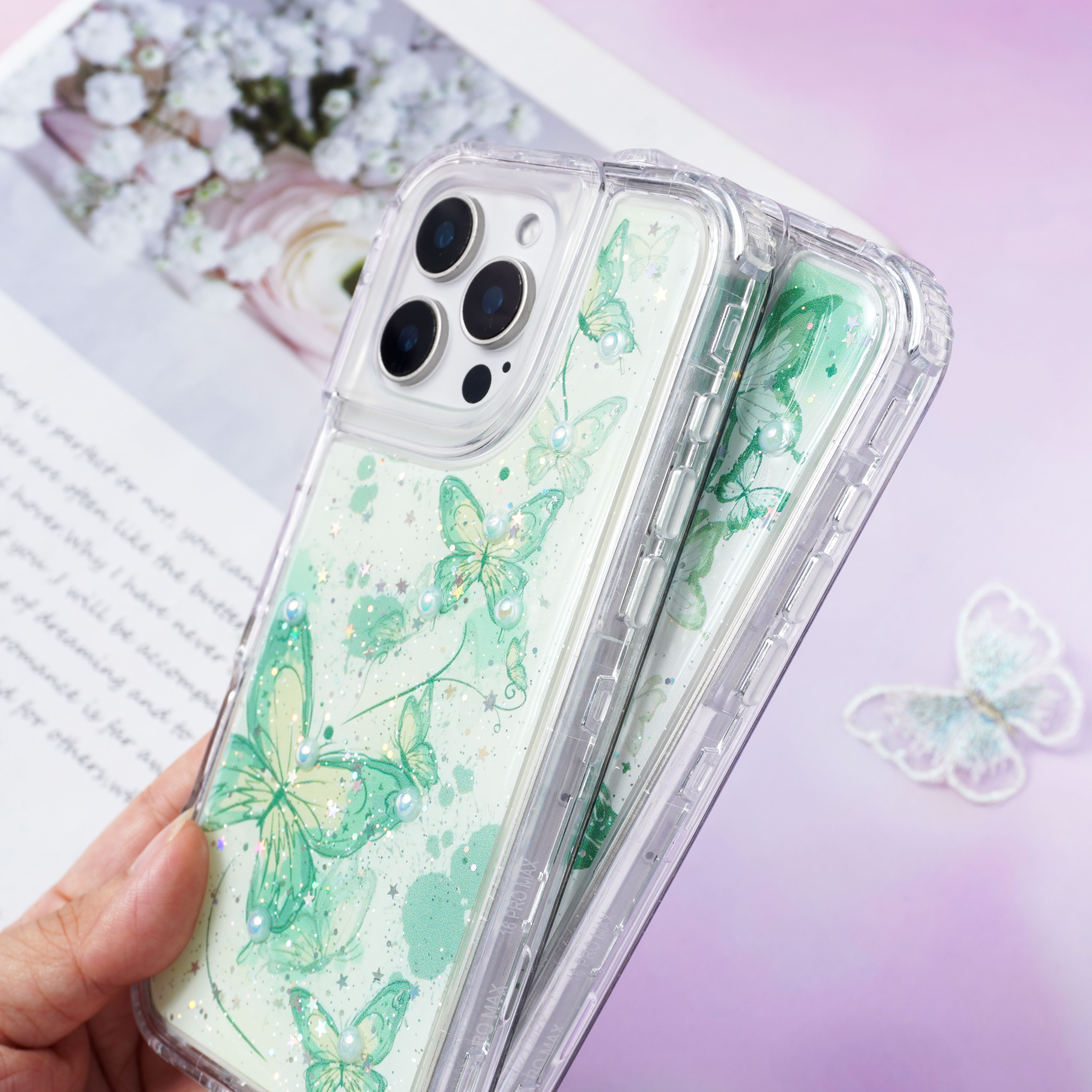 彩绘+滴胶闪粉珍珠