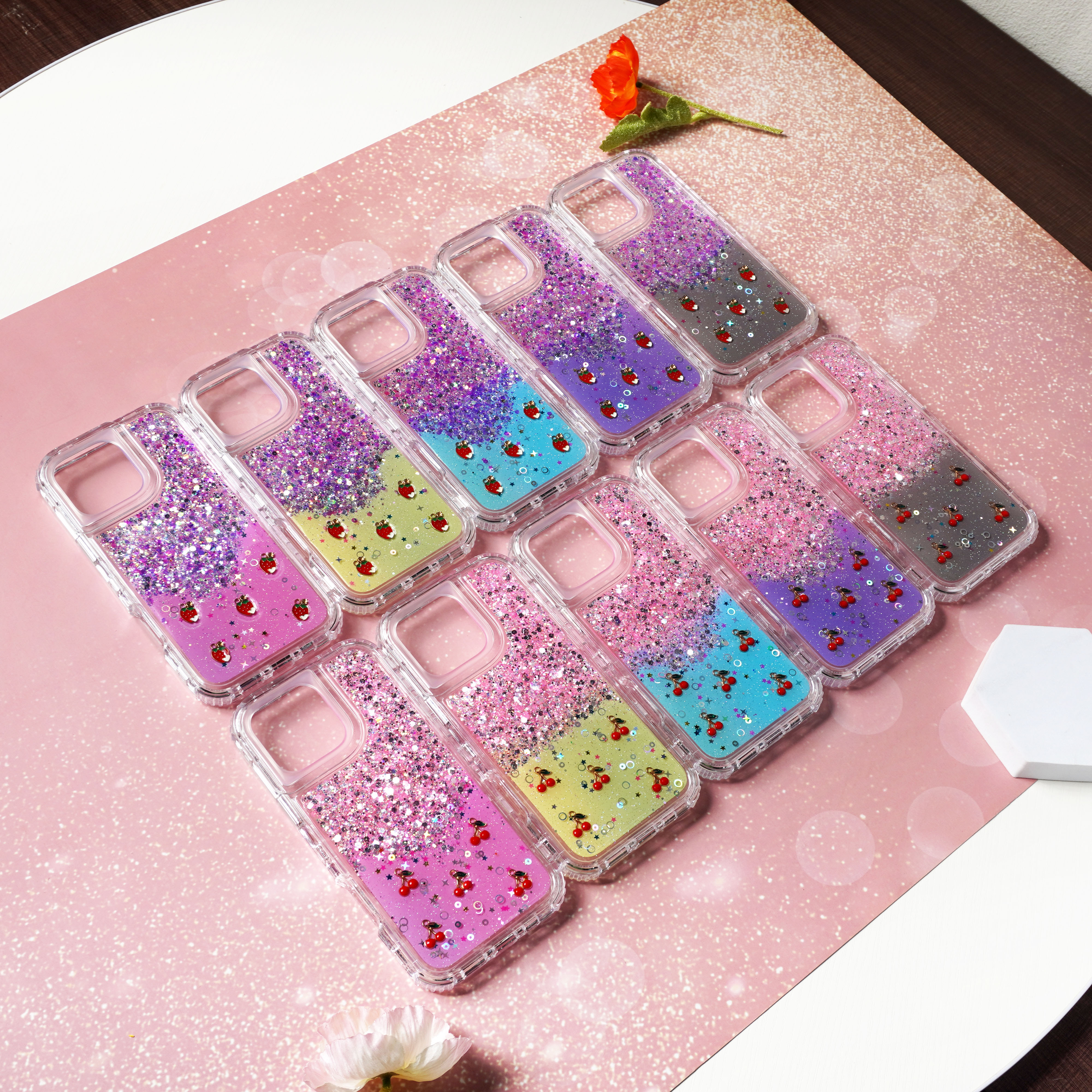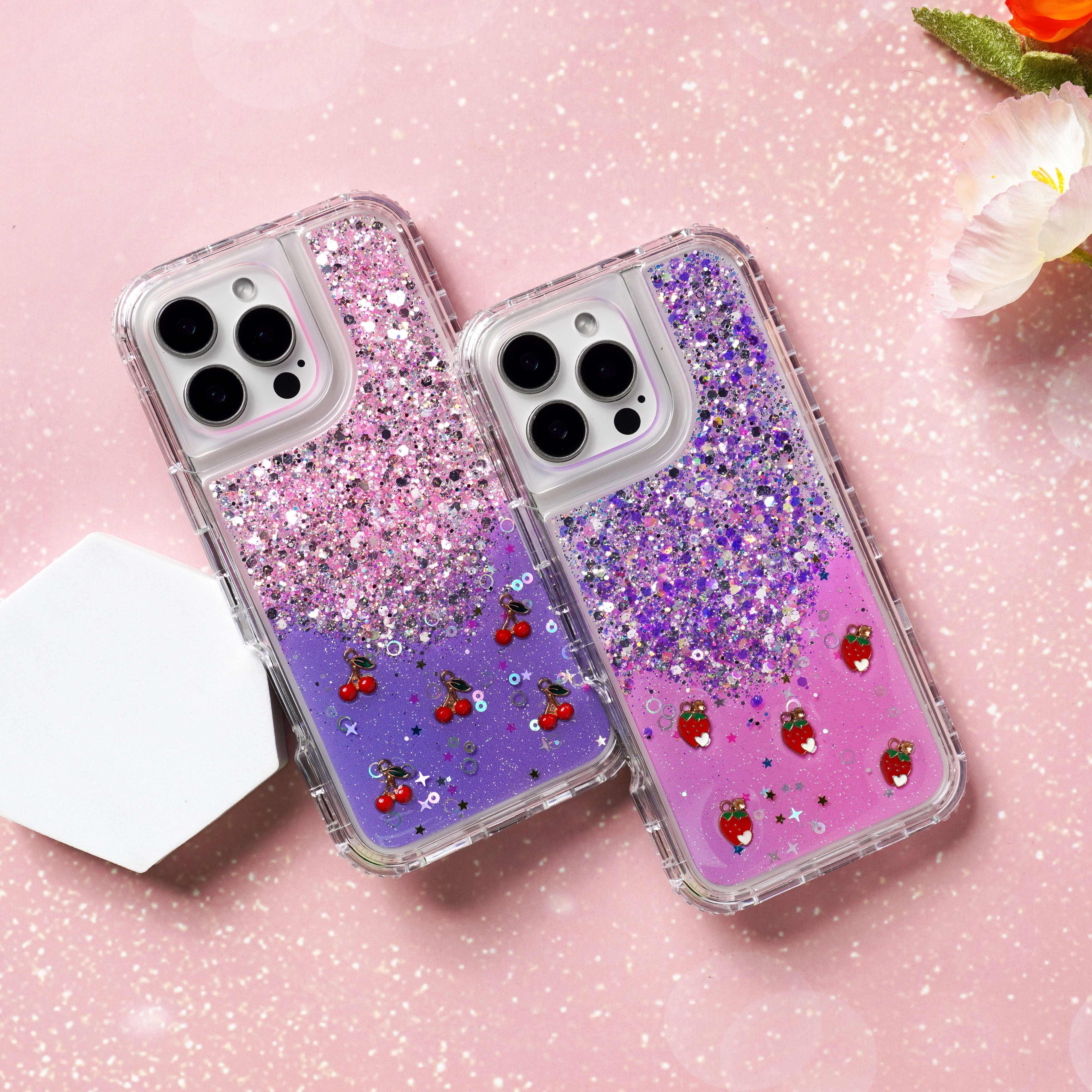 滴胶闪粉+草莓樱桃饰品