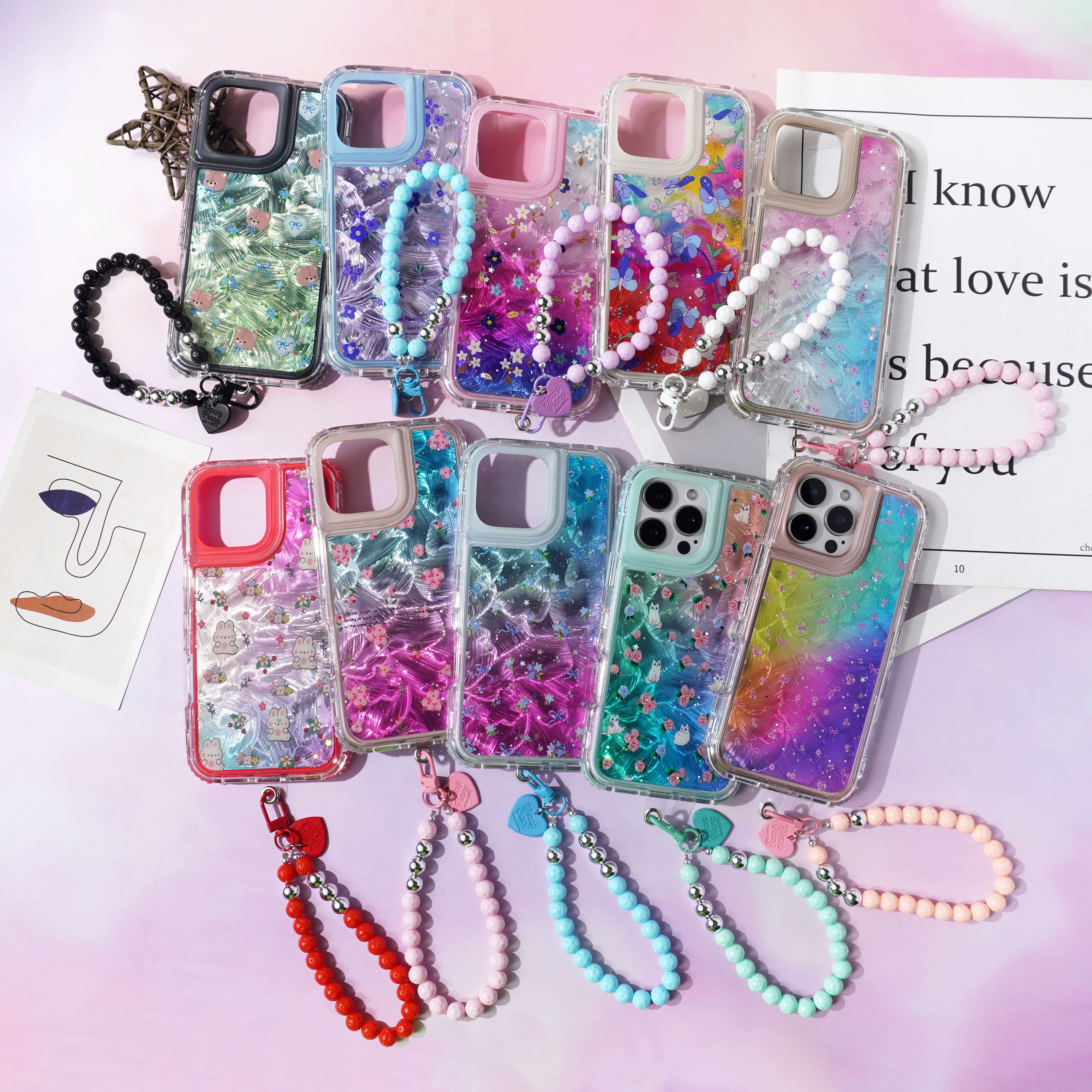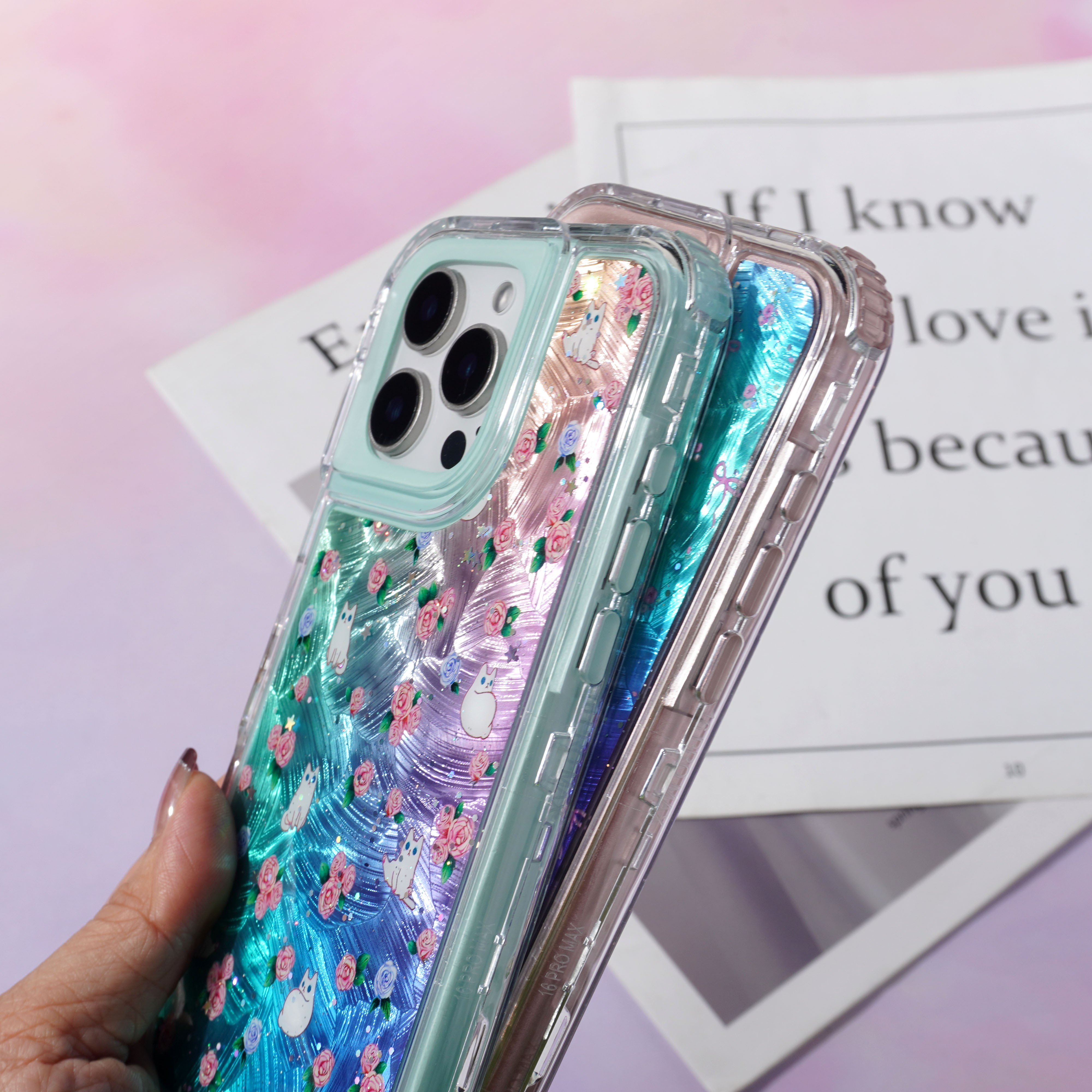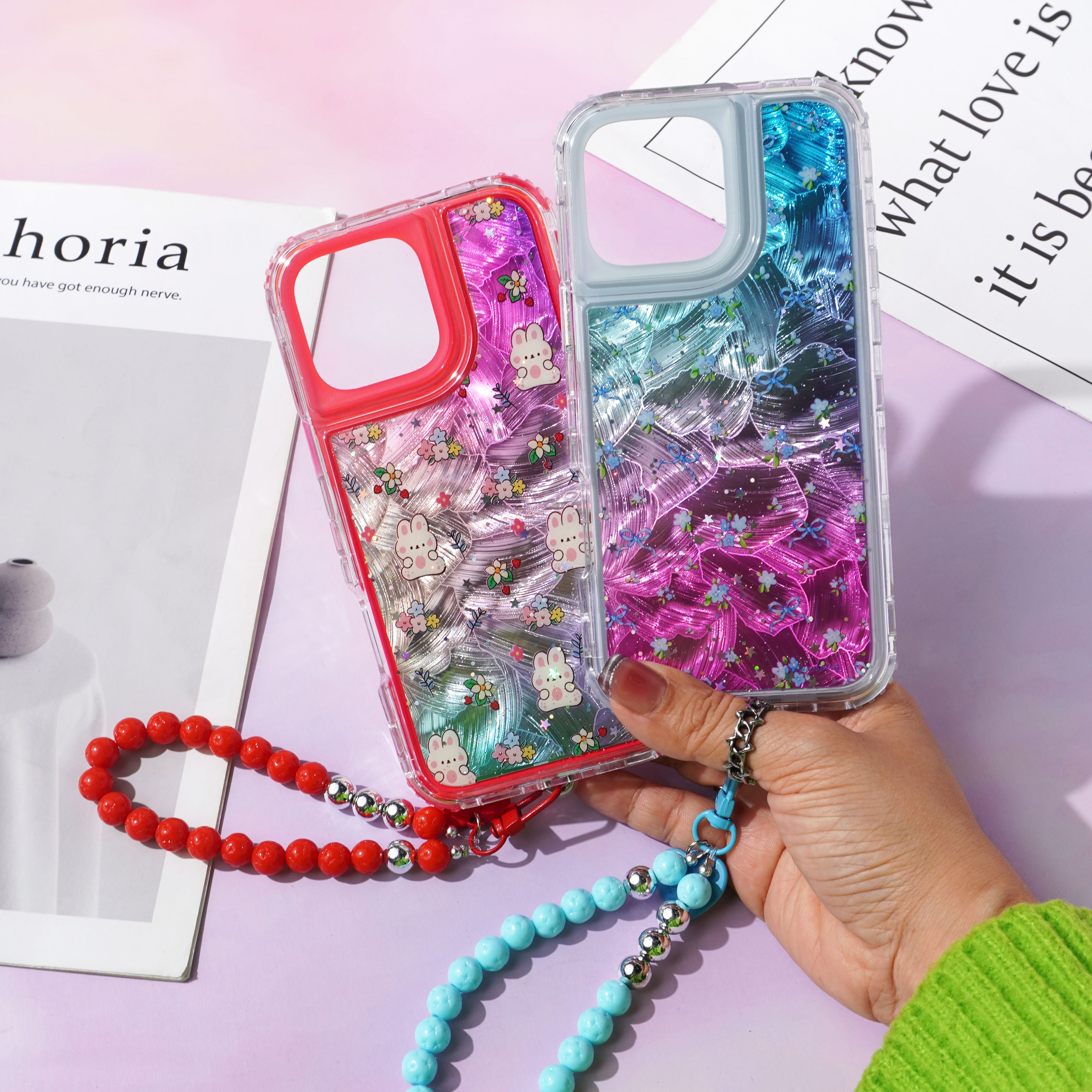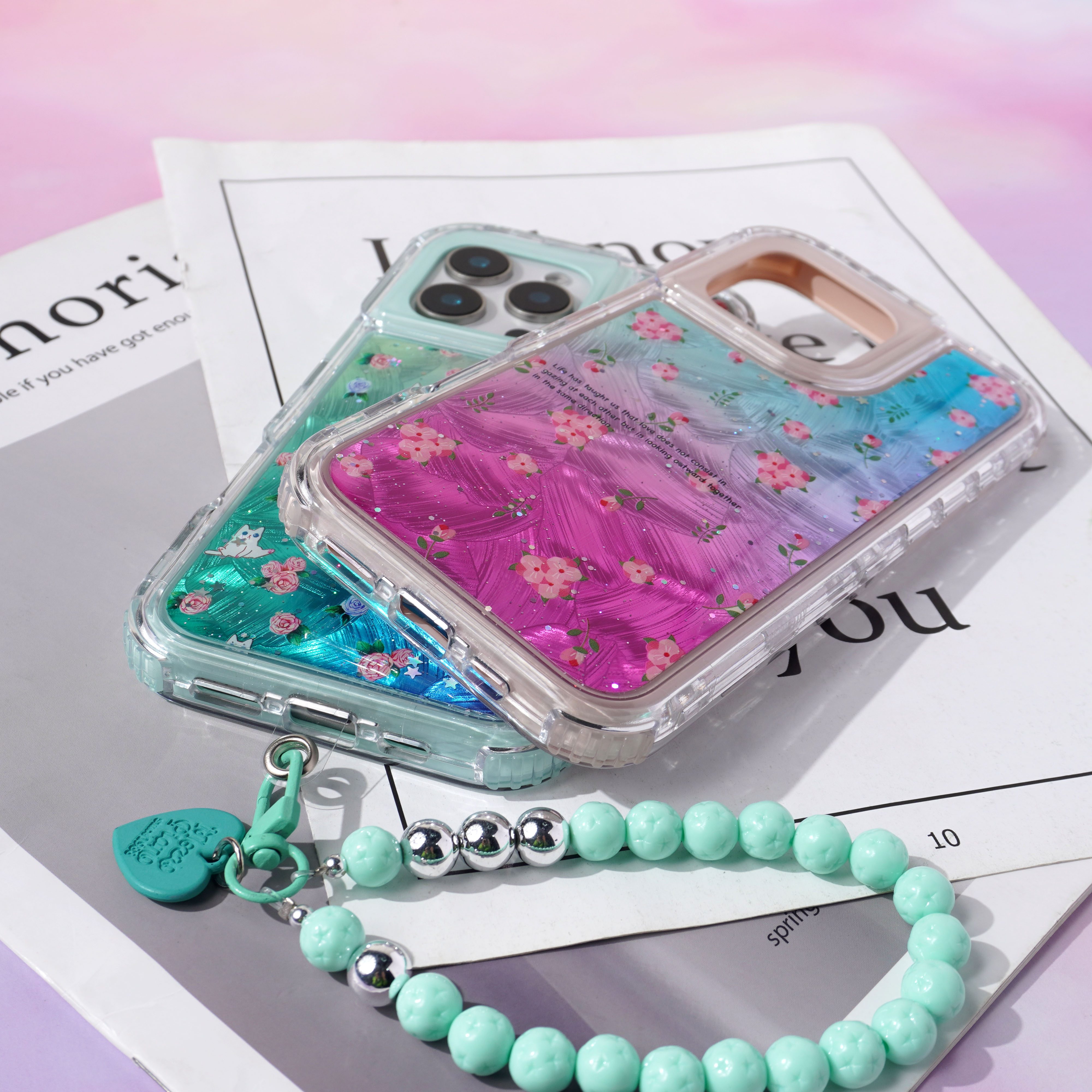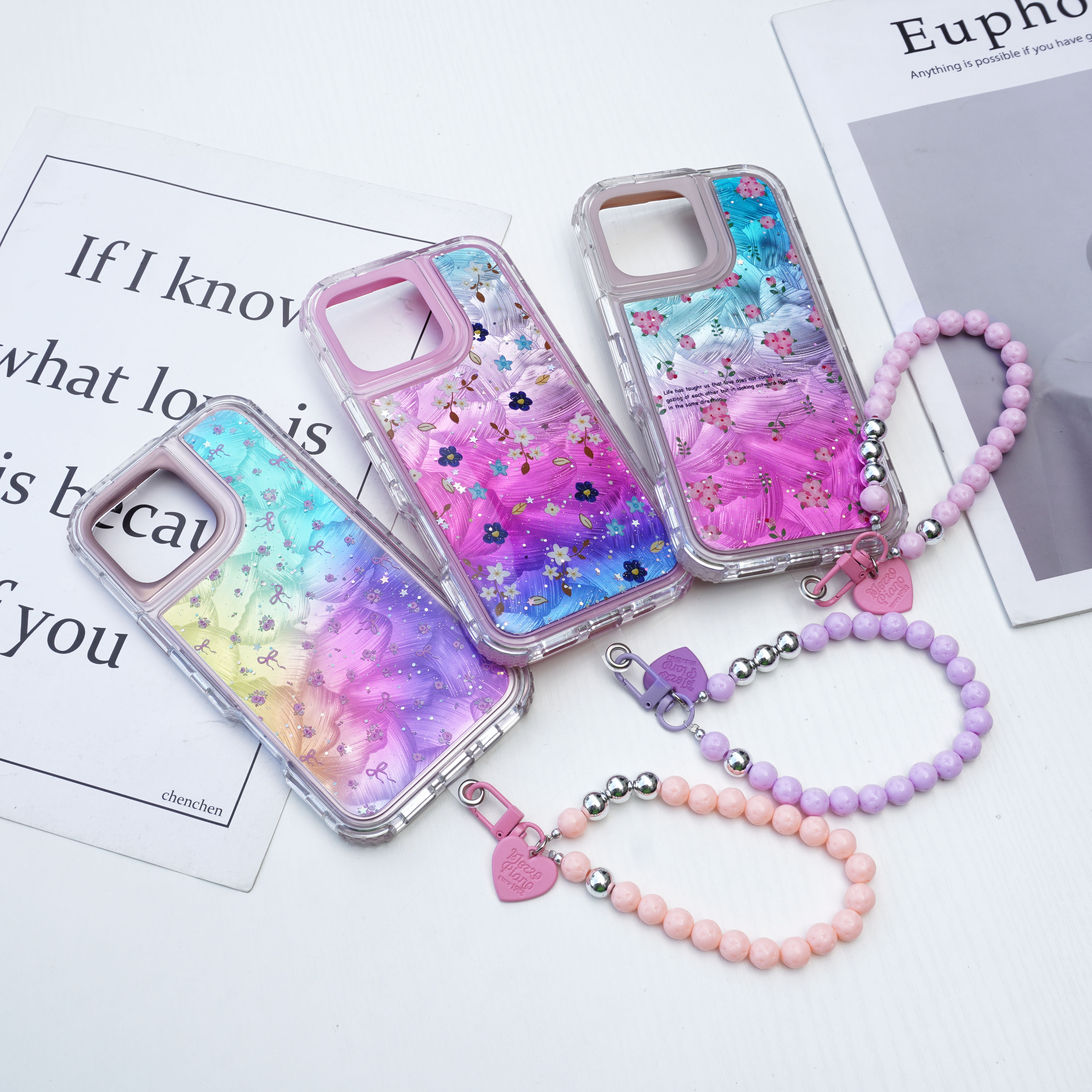 内喷亮皮革+羽毛彩绘+滴胶+里布