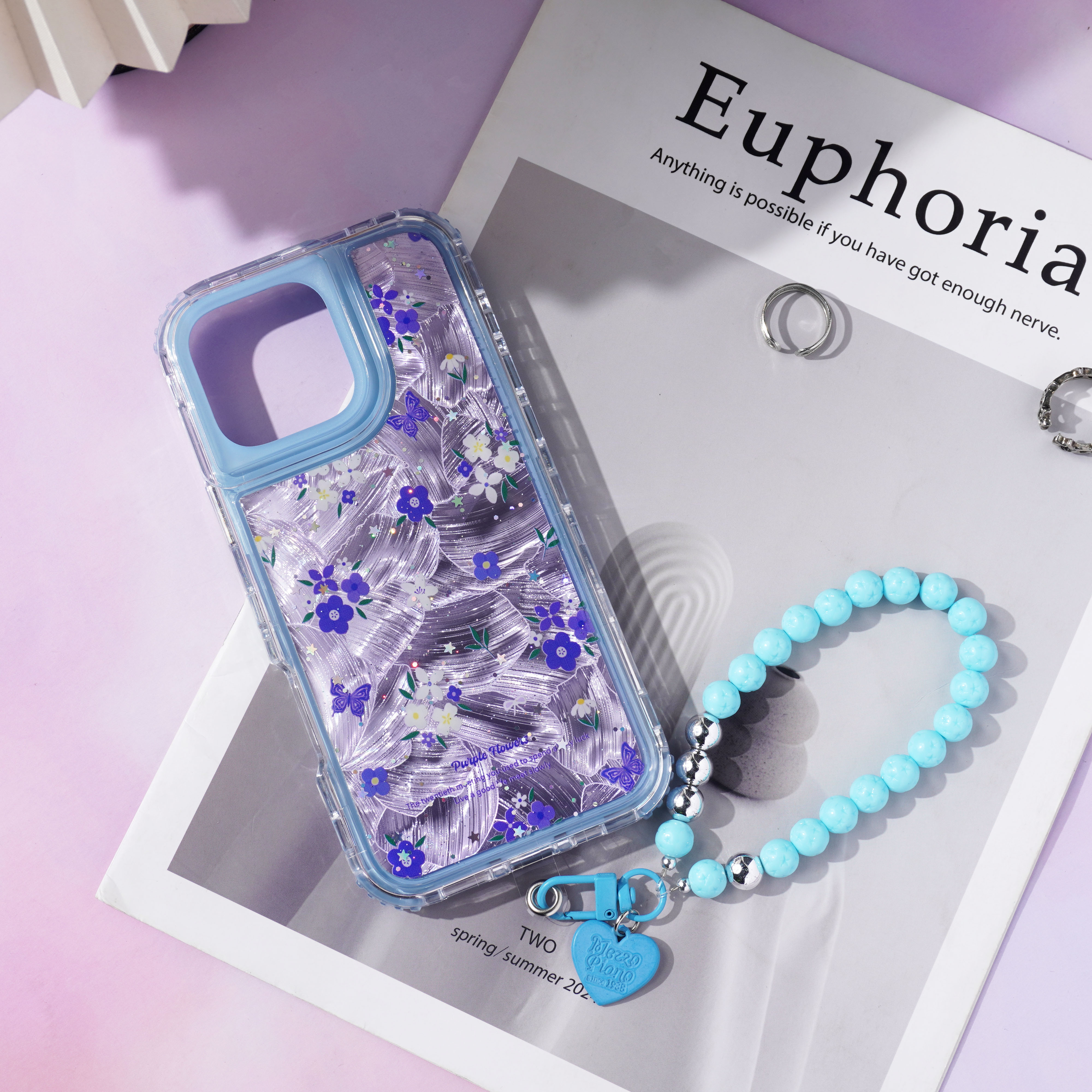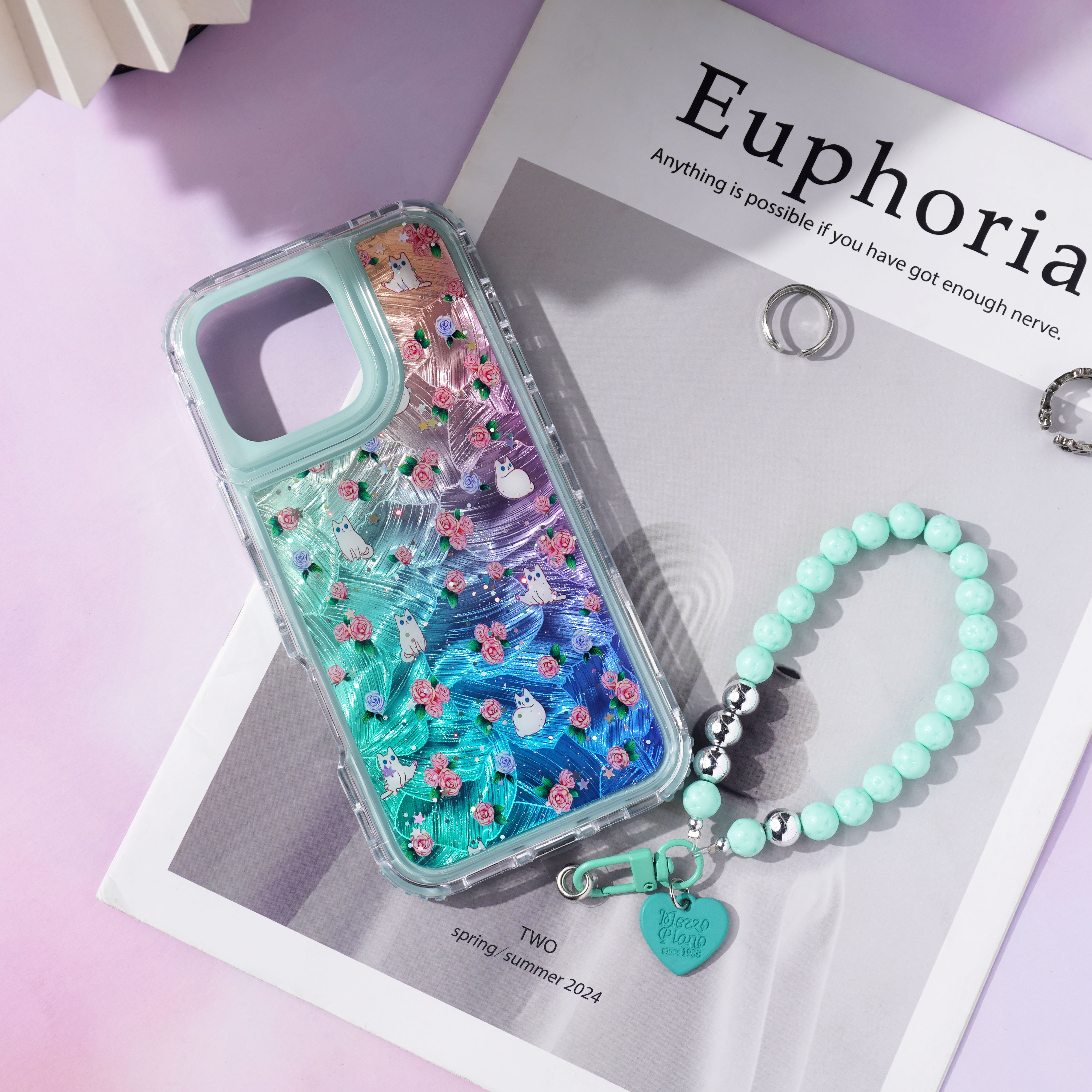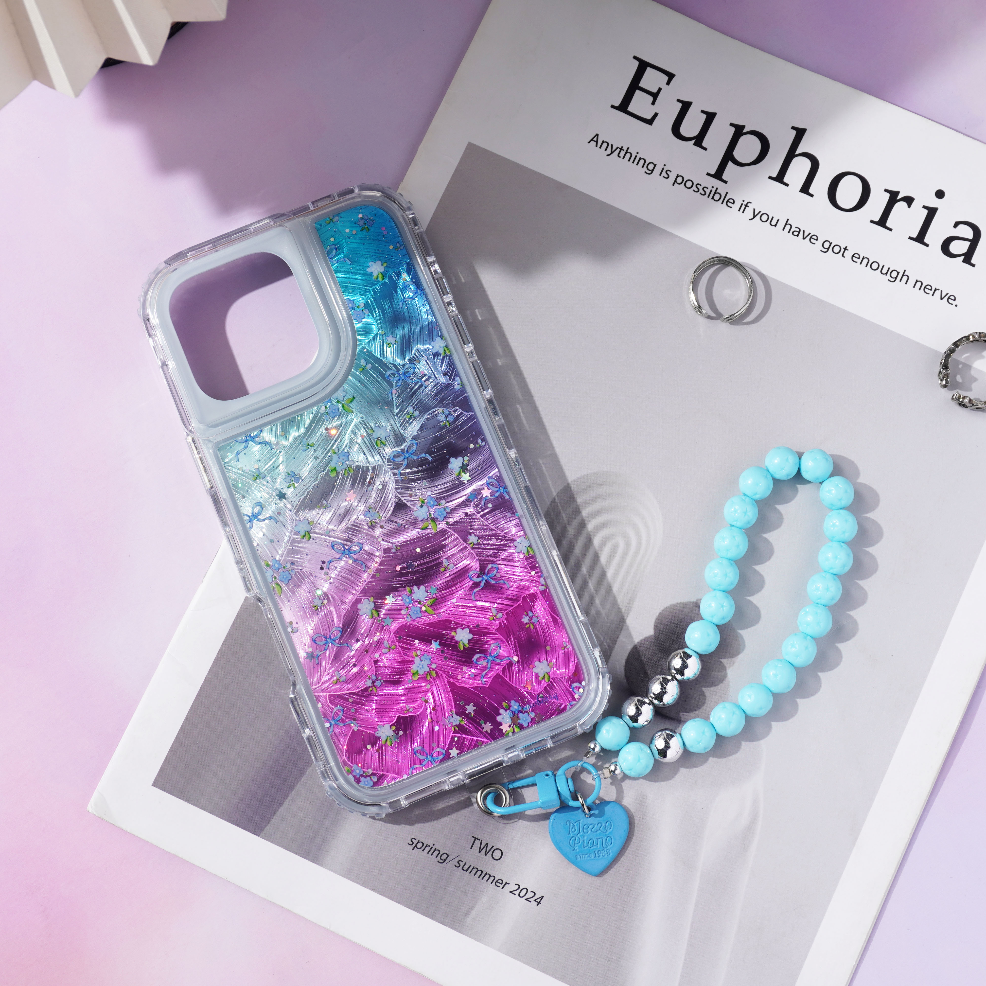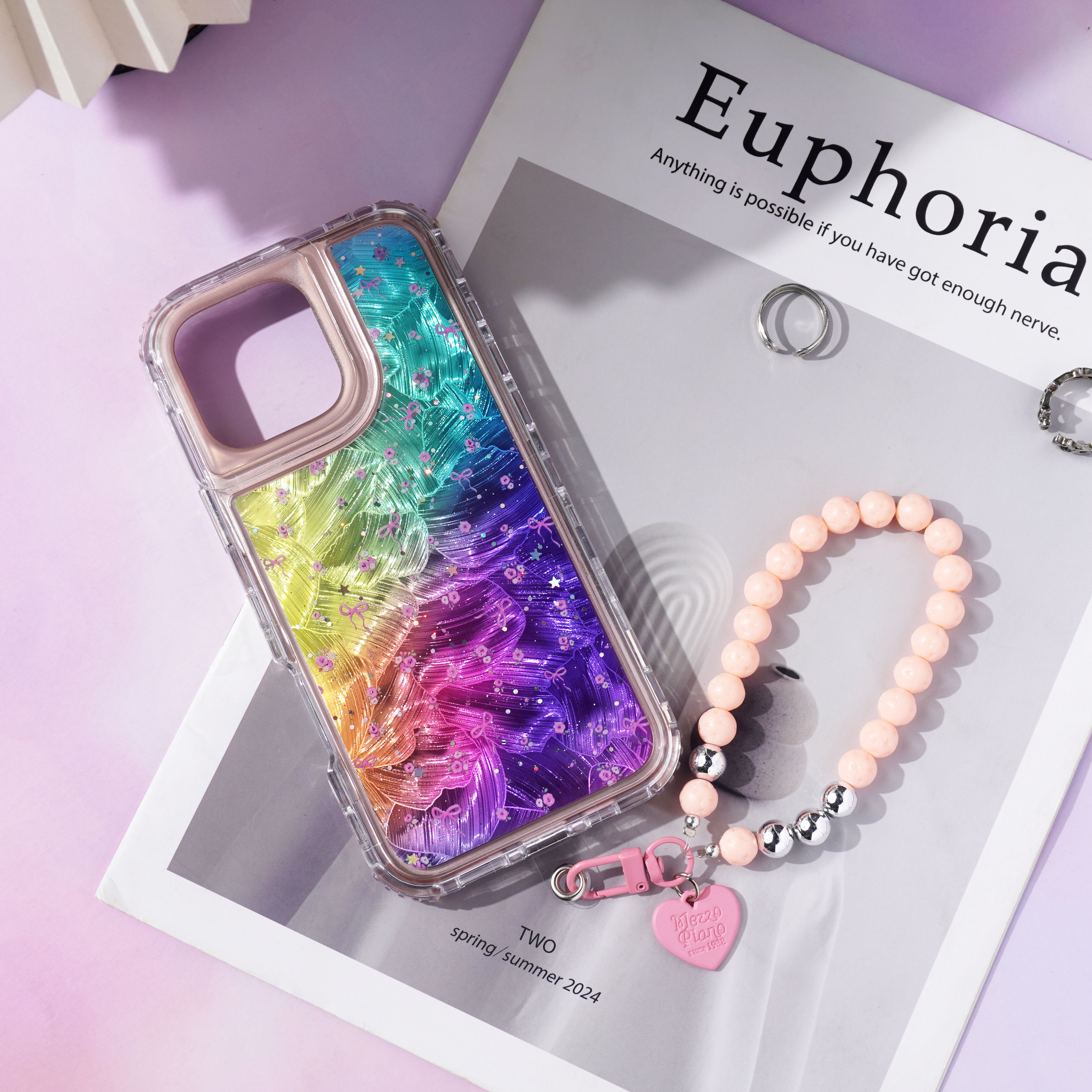 内喷亮皮革+羽毛彩绘+滴胶+里布