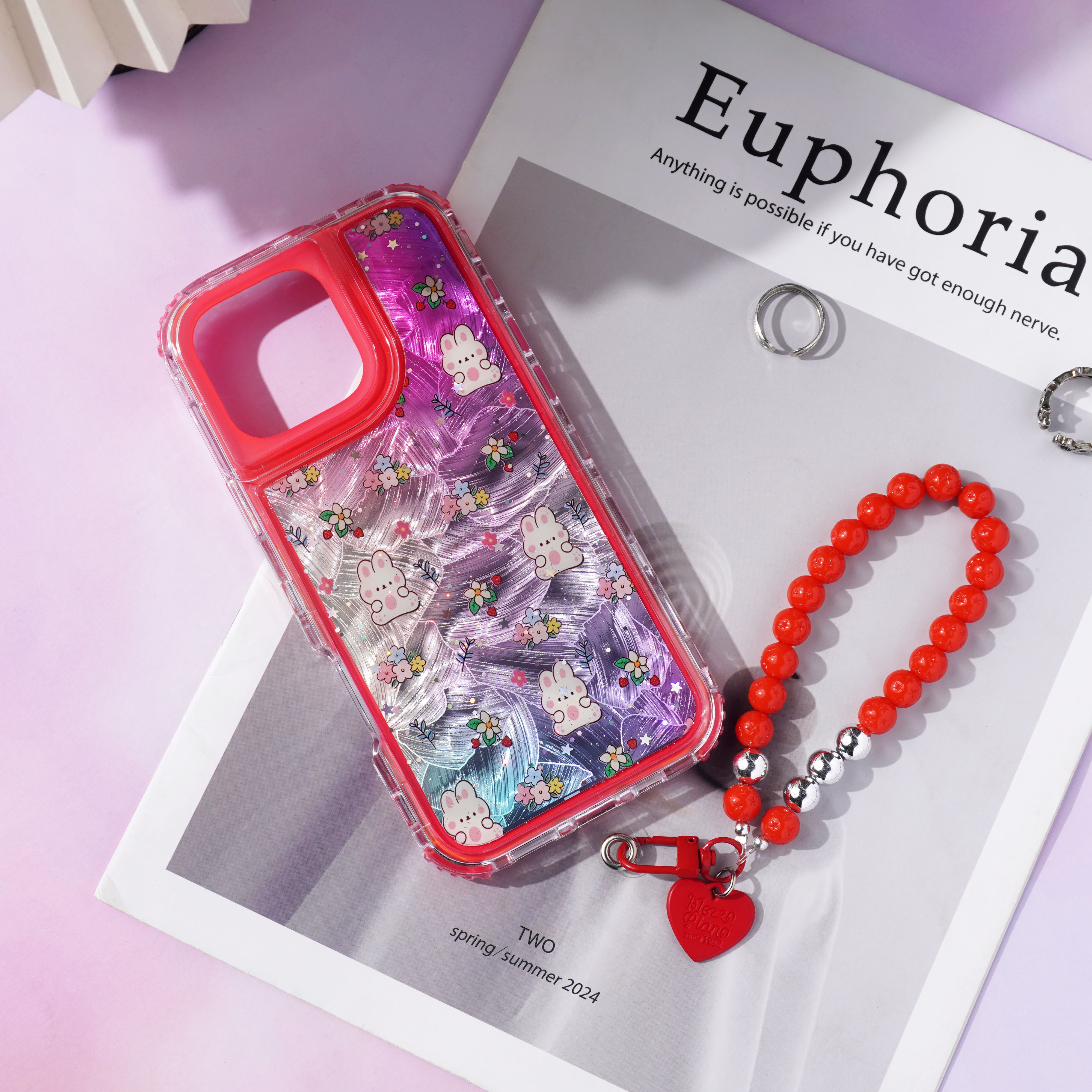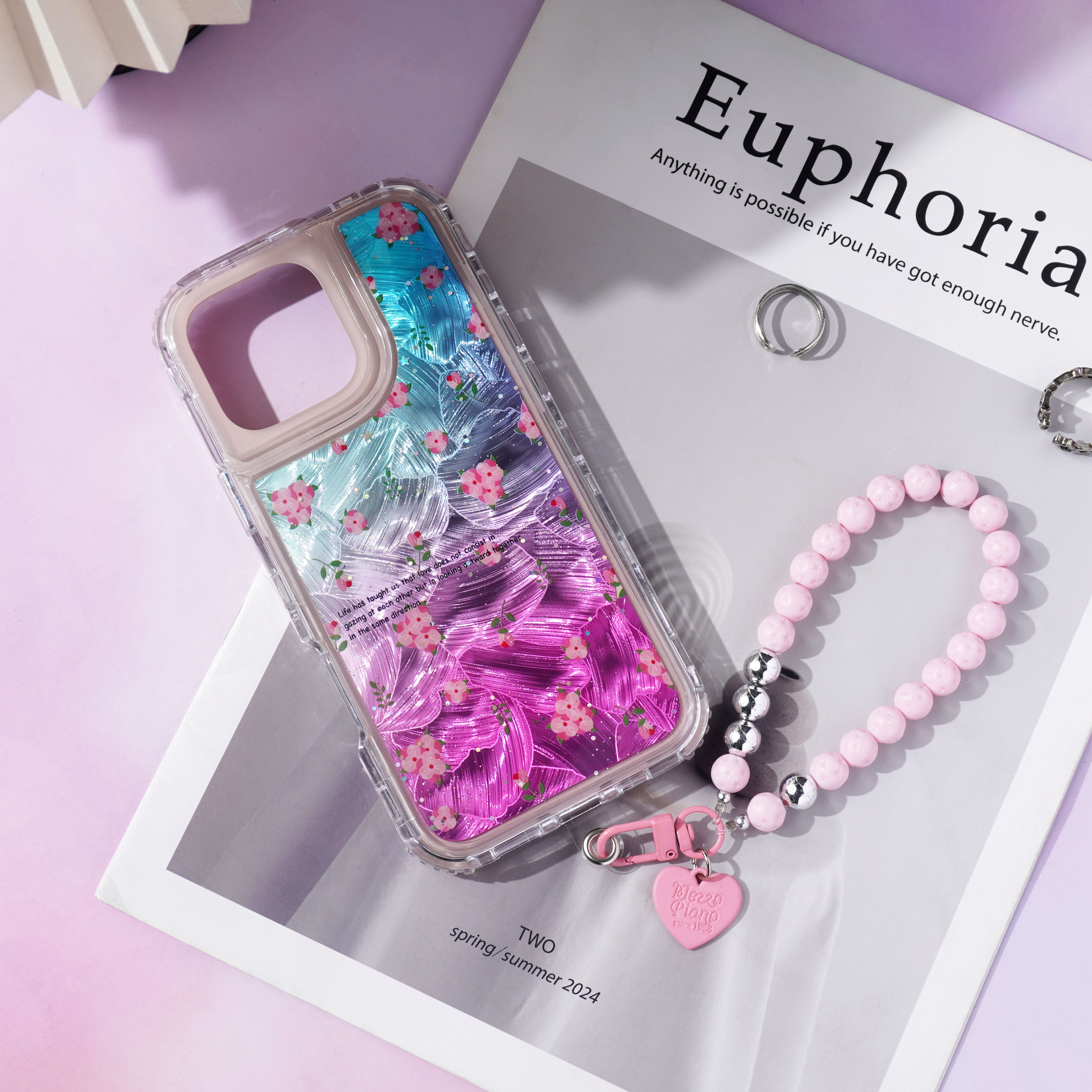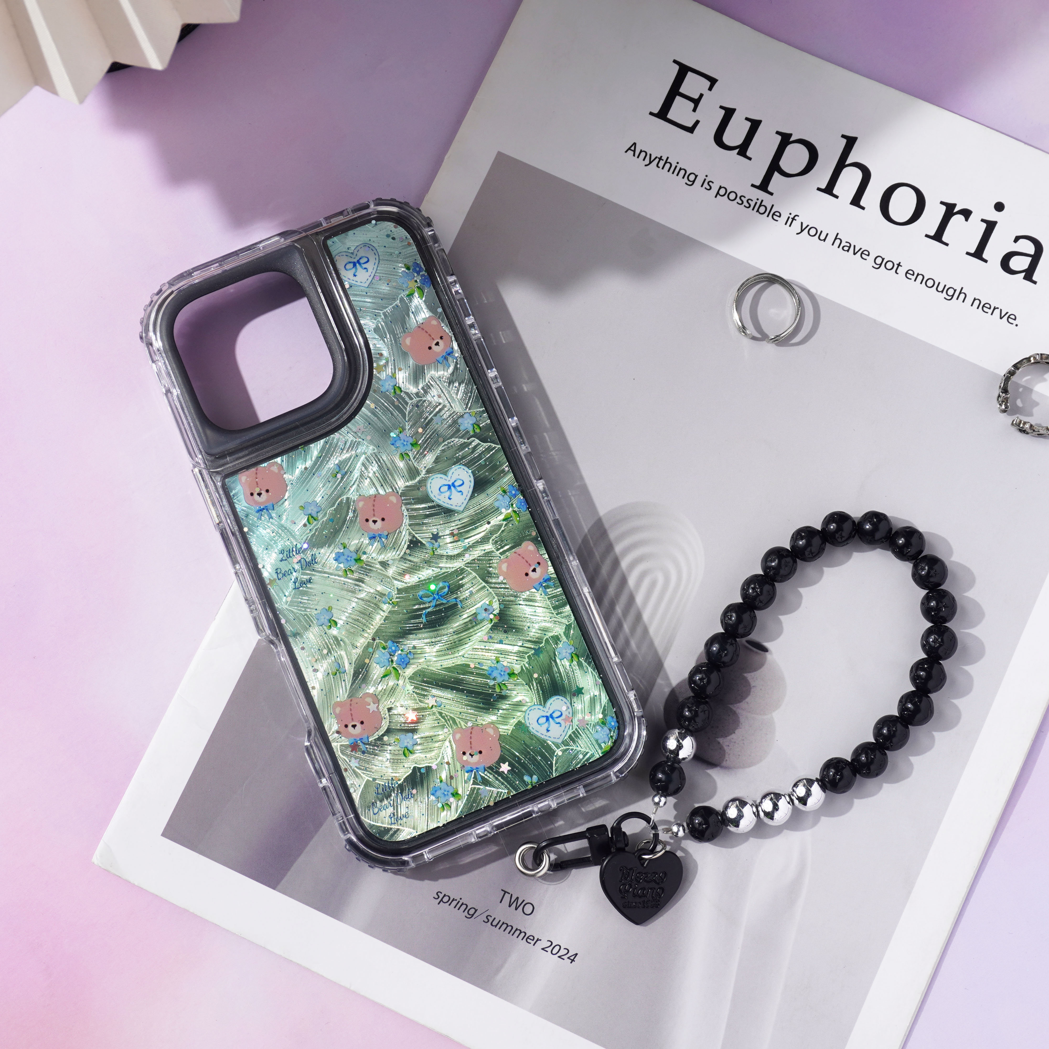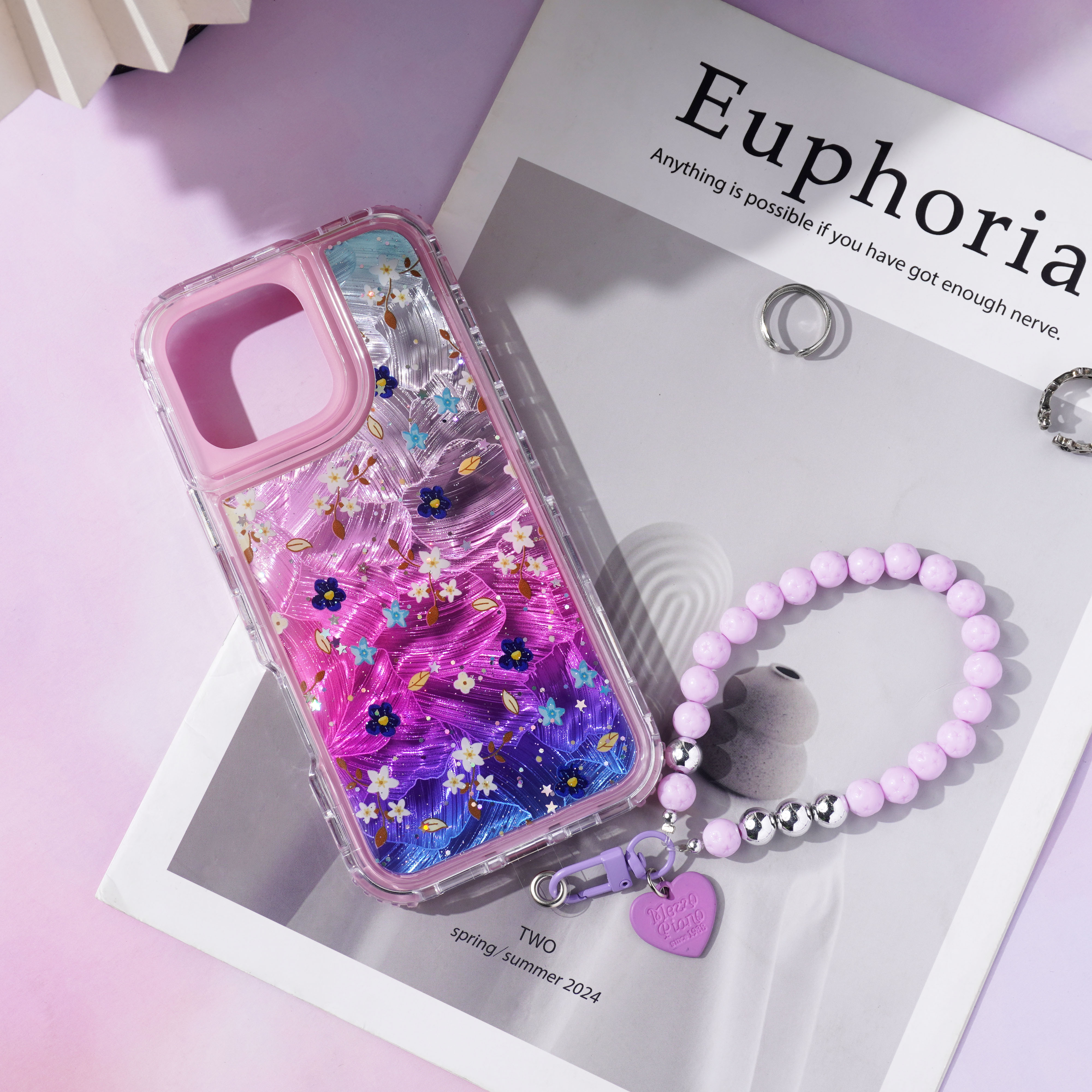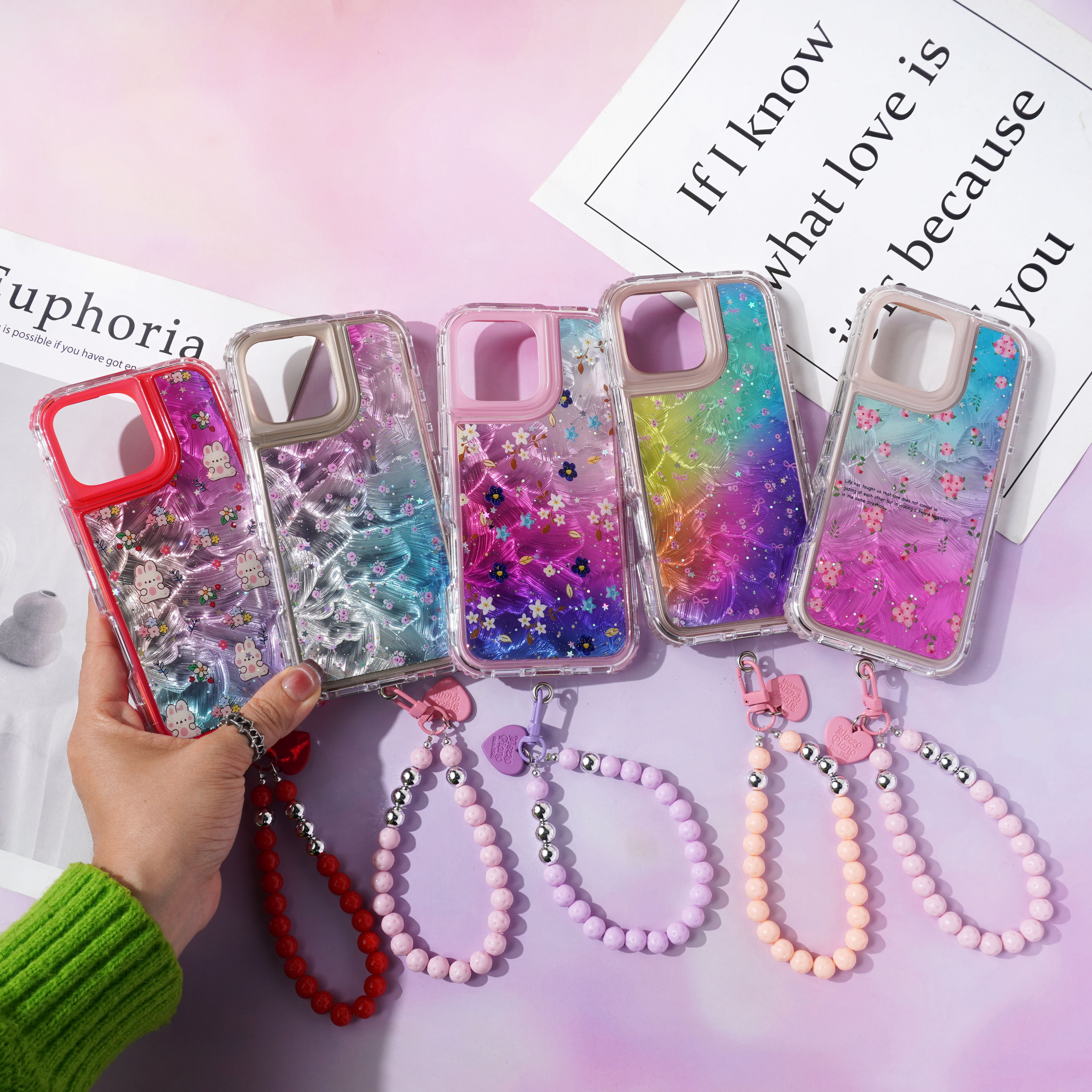 内喷亮皮革+羽毛彩绘+滴胶+里布